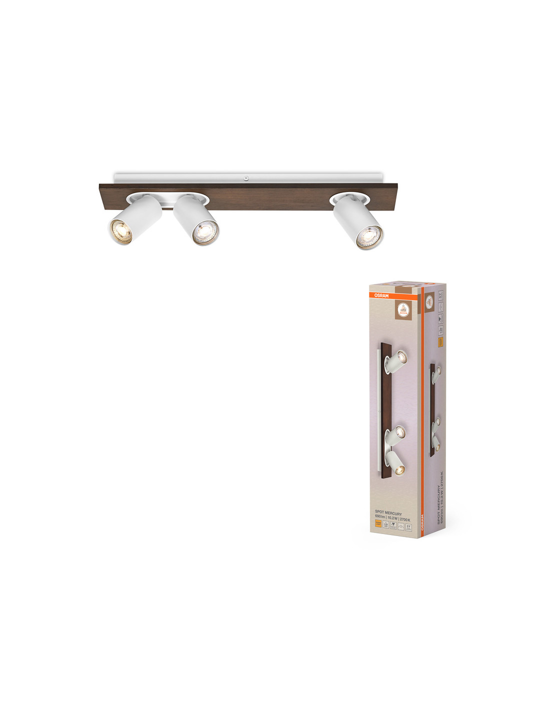 Cechy produktu: Rodzina opraw obejmuje cztery wersje z maksymalnie 4 głowicami punktowymi. Materiał obudowy: metal i drewno. Włącznik/wyłącznik w wersji 1-głowicowej dla łatwej obsługi. Regulowane oprawy. Zalety produktu: Wysoka jakość . Wysokiej jakości obudowa o białej lub czarnej matowej powierzchni. Uniwersalne rozwiązanie dzięki wymiennym lampom LED. W zestawie ściemniana lampa OSRAM. Łatwy montaż. Obszary zastosowań: Zastosowania wewnętrzne. Korytarze, wejścia, klatki schodowe, pokoje dzienne, sutereny. Kuchnie, przestrzenie robocze. Montaż powierzchniowy na suficie i ścianach. Wyposażenie / Akcesoria: Kompletne akcesoria do montażu i podłączenia w zestawie. Porady dotyczące bezpieczeństwa: Wszystkie podłączenia elektryczne muszą być wykonane przez osobę wykwalifikowaną.. Uwaga, ryzyko porażenia prądem.. Produkt w klasie ochrony I. Wszystkie przewodzące prąd, metalowe części obudowy, które mogą absorbować napięcie podczas pracy lub podczas konserwacji w przypadku awarii, muszą być stale PODŁĄCZONE do przewodu uziemiającego..