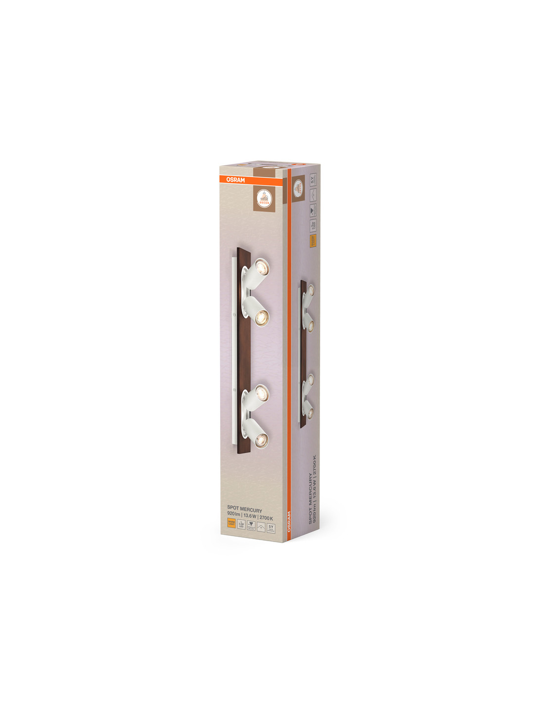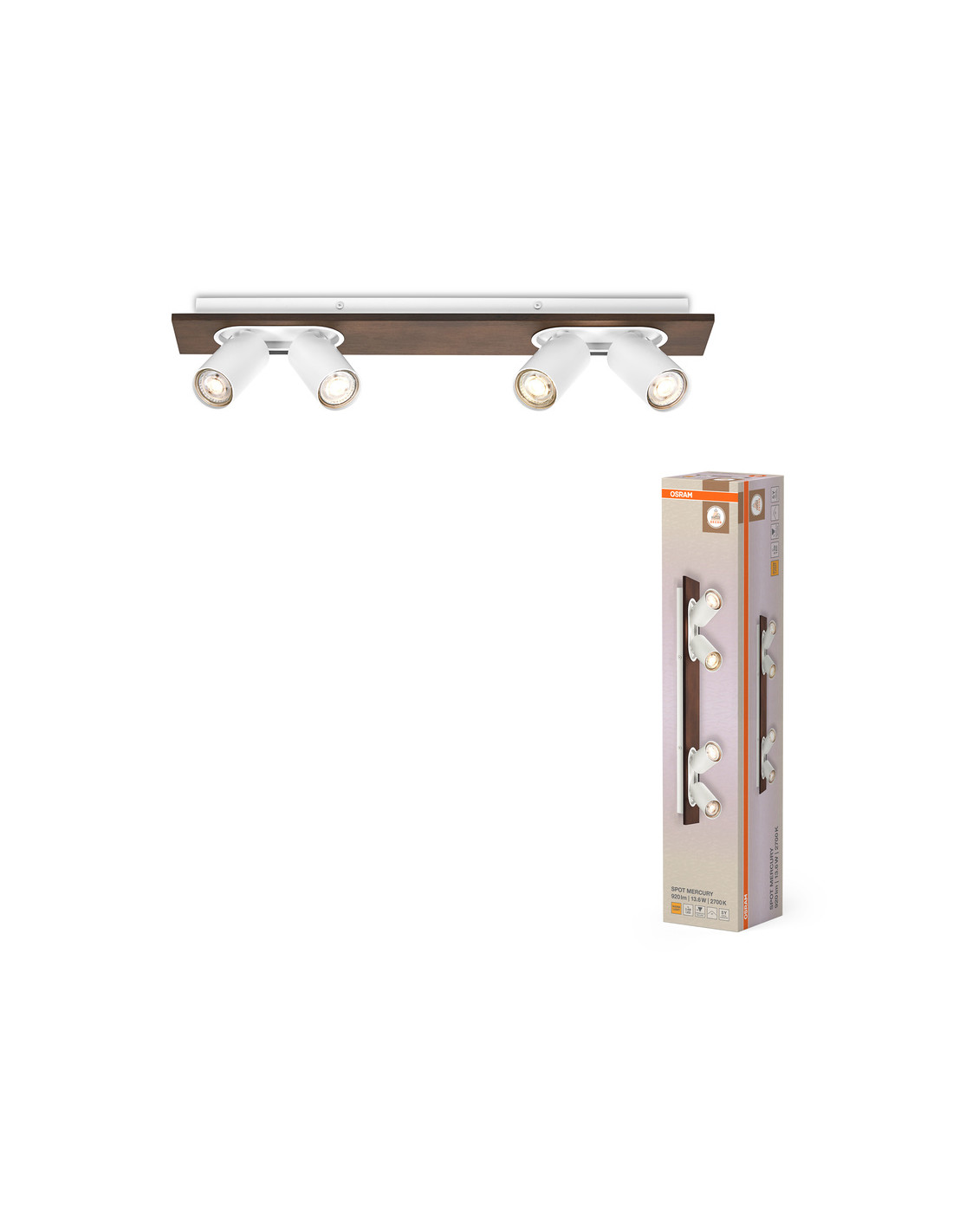 Cechy produktu: Rodzina opraw obejmuje cztery wersje z maksymalnie 4 głowicami punktowymi. Materiał obudowy: metal i drewno. Włącznik/wyłącznik w wersji 1-głowicowej dla łatwej obsługi. Regulowane oprawy. Zalety produktu: Wysoka jakość . Wysokiej jakości obudowa o białej lub czarnej matowej powierzchni. Uniwersalne rozwiązanie dzięki wymiennym lampom LED. W zestawie ściemniana lampa OSRAM. Łatwy montaż. Obszary zastosowań: Zastosowania wewnętrzne. Korytarze, wejścia, klatki schodowe, pokoje dzienne, sutereny. Kuchnie, przestrzenie robocze. Montaż powierzchniowy na suficie i ścianach. Wyposażenie / Akcesoria: Kompletne akcesoria do montażu i podłączenia w zestawie. Porady dotyczące bezpieczeństwa: Wszystkie podłączenia elektryczne muszą być wykonane przez osobę wykwalifikowaną.. Uwaga, ryzyko porażenia prądem.. Produkt w klasie ochrony I. Wszystkie przewodzące prąd, metalowe części obudowy, które mogą absorbować napięcie podczas pracy lub podczas konserwacji w przypadku awarii, muszą być stale PODŁĄCZONE do przewodu uziemiającego..