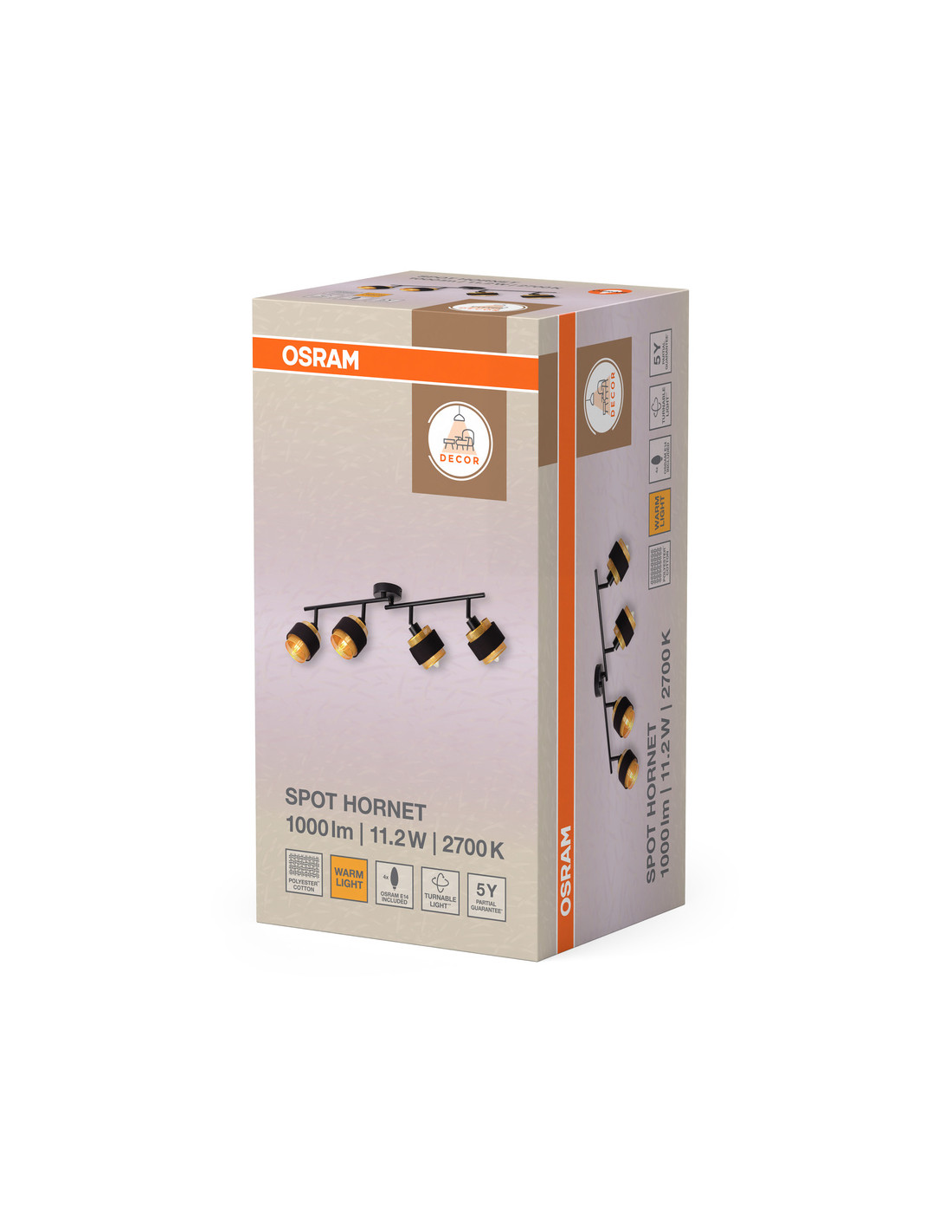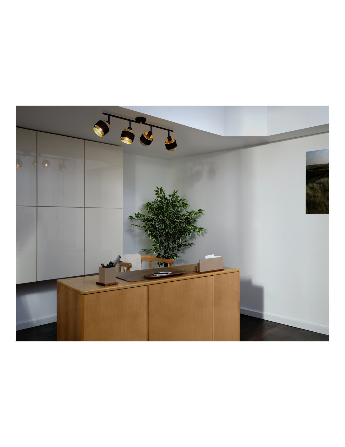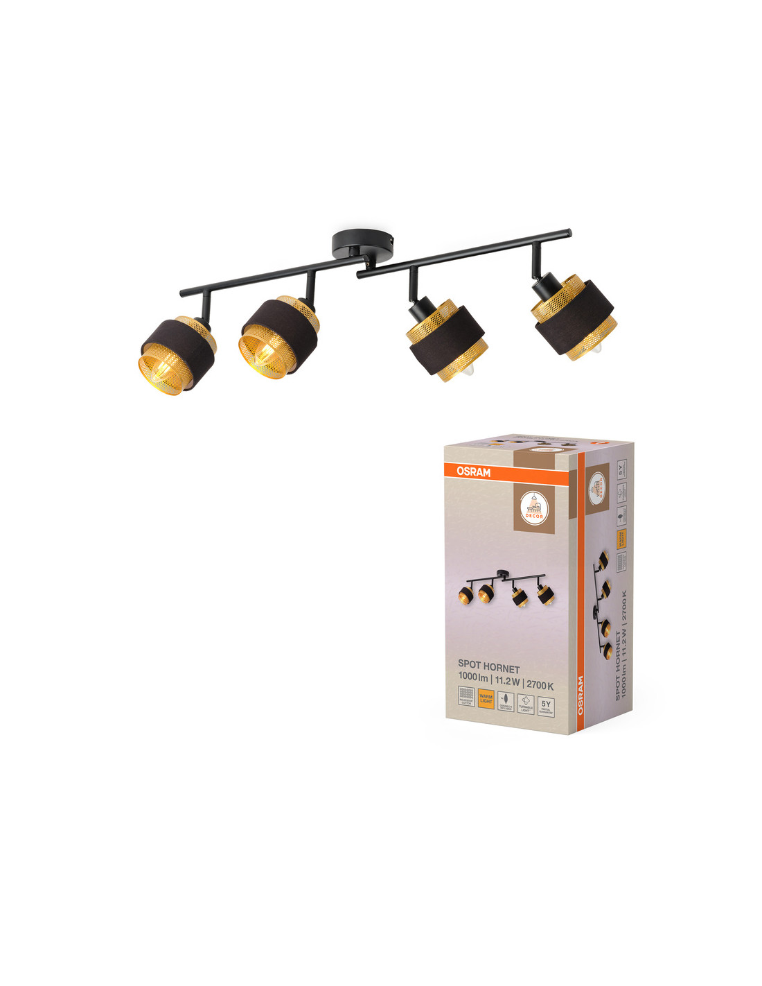 Cechy produktu: Materiał obudowy: metal i tkanina. Rodzina opraw obejmuje pięć wersji z maksymalnie 4 głowicami punktowymi. Regulowane oprawy. Zalety produktu: Włącznik/wyłącznik w modelu 1-punktowym zapewniający wygodną obsługę. Zrównoważone rozwiązanie dzięki wymiennym źródłom światła. Łatwy montaż. W zestawie ściemnialne lampy LED OSRAM. Obszary zastosowań: Zastosowania wewnętrzne. Korytarze, wejścia, klatki schodowe, pokoje dzienne, sutereny. Sypialnie. Porady dotyczące bezpieczeństwa: Wszystkie podłączenia elektryczne muszą być wykonane przez osobę wykwalifikowaną.. Uwaga, ryzyko porażenia prądem.. Produkt w klasie ochrony I. Wszystkie przewodzące prąd, metalowe części obudowy, które mogą absorbować napięcie podczas pracy lub podczas konserwacji w przypadku awarii, muszą być stale PODŁĄCZONE do przewodu uziemiającego.. Sprawdź przydatność ściany i sufitu. Jeśli nie jesteś pewien, zasięgnij profesjonalnej porady..