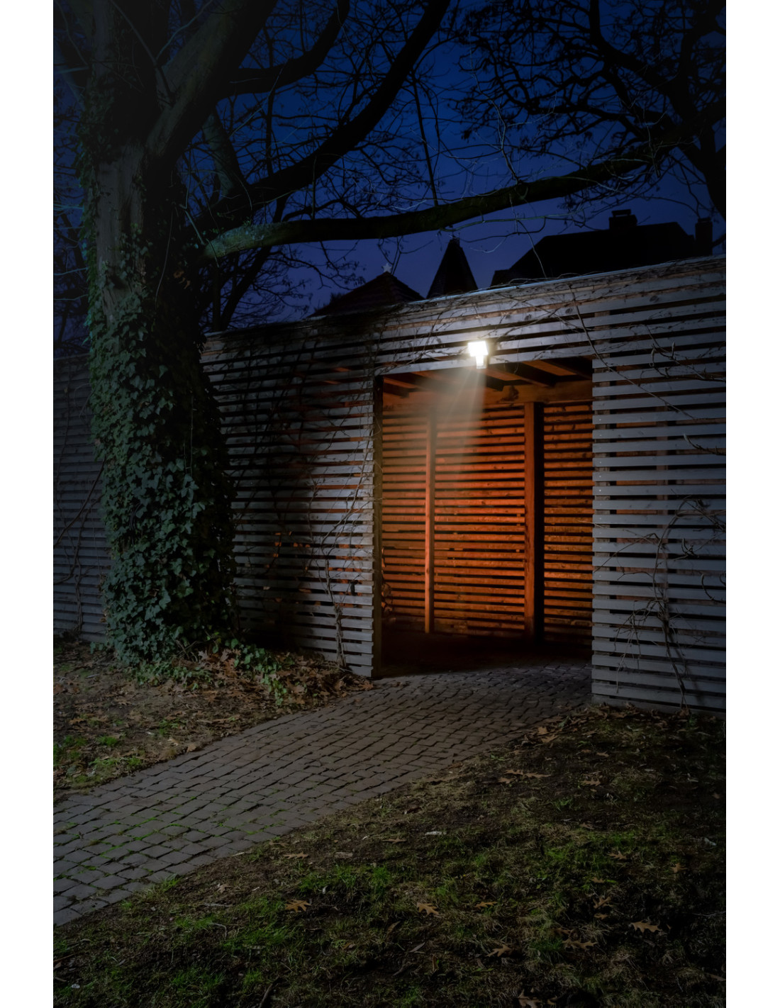 Cechy produktu: Do wyboru cztery tryby pracy (stale włączone oświetlenie przez sześć godzin, tryb czuwania, włączanie za pomocą ruchu lub po zmroku). Regulowana głowica oprawy oświetleniowej. Stopień ochrony: IP55. Odporność na uderzenie: IK05. Klasa ochronności: II. Zalety produktu: Jednorodne oświetlenie. Oświetlenie zgodne z wymaganiami dzięki regulowanej głowicy oprawy oświetleniowej. Łatwa i szybka instalacja. Obszary zastosowań: Na zewnątrz. Parkingi, place miejskie, parki. Pasaże handlowe. Porady dotyczące bezpieczeństwa: Wszystkie podłączenia elektryczne muszą być wykonane przez osobę wykwalifikowaną.. Uwaga, ryzyko porażenia prądem.. Aby ograniczyć ryzyko uduszenia, elastyczne przewody PODŁĄCZONE do tej oprawy należy solidnie przymocować do ściany, jeśli znajdują się w zasięgu ręki..