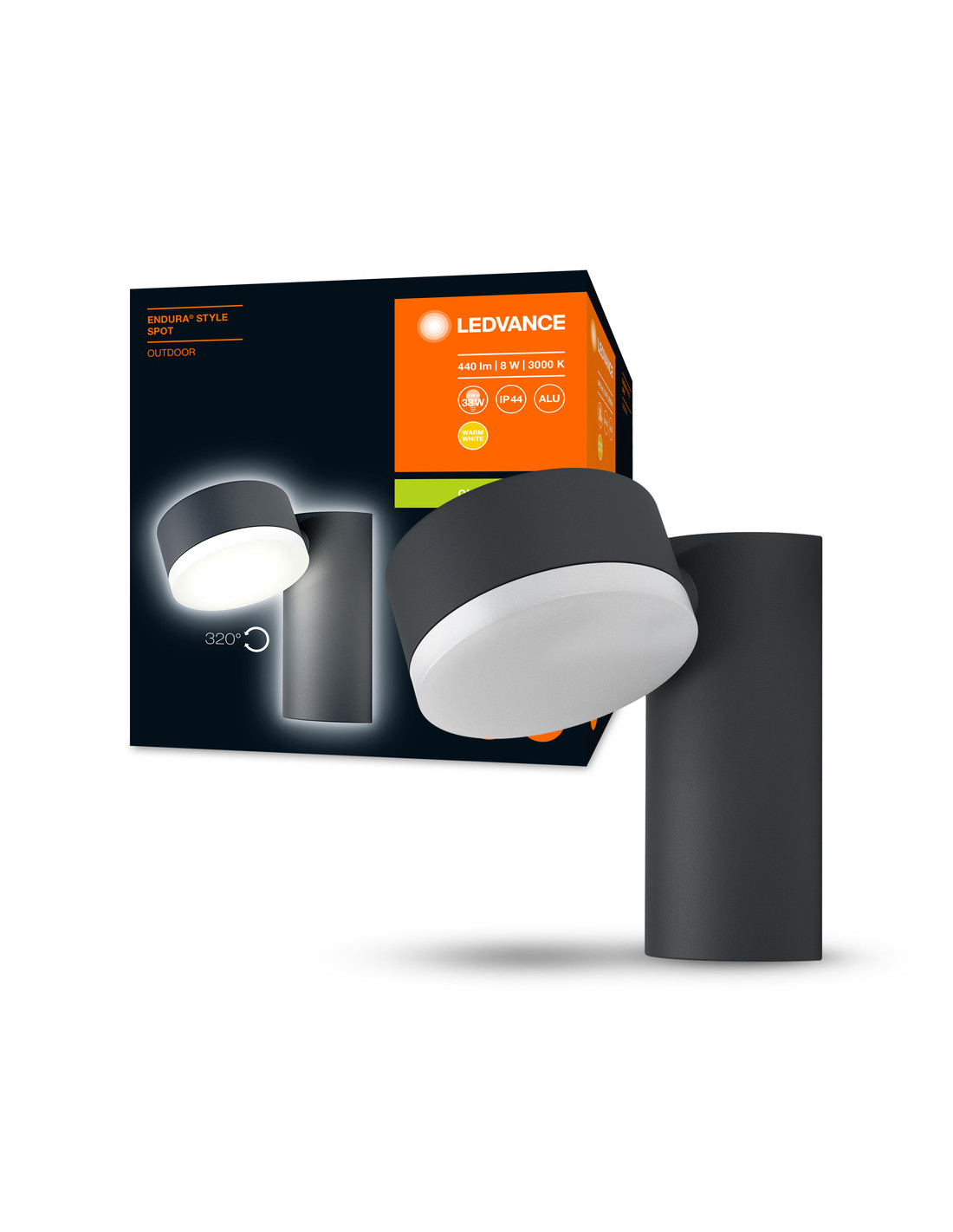 KINKIET ZEWNĘTRZNY ENDURA STYLE SPOT ROUND 8W 3000K 440LM IP44 DARK GRAY