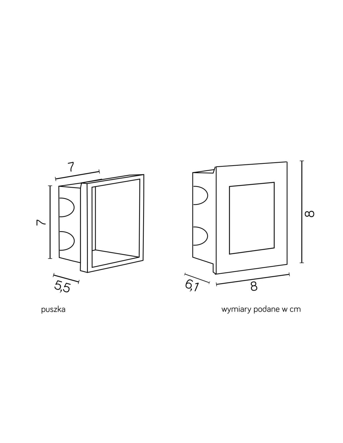 MUR LED ZEWNĘTRZNA LAMPA DO ZABUDOWY 1.5W 3000K 64LM 80x80mm INOX F-04 SU-MA