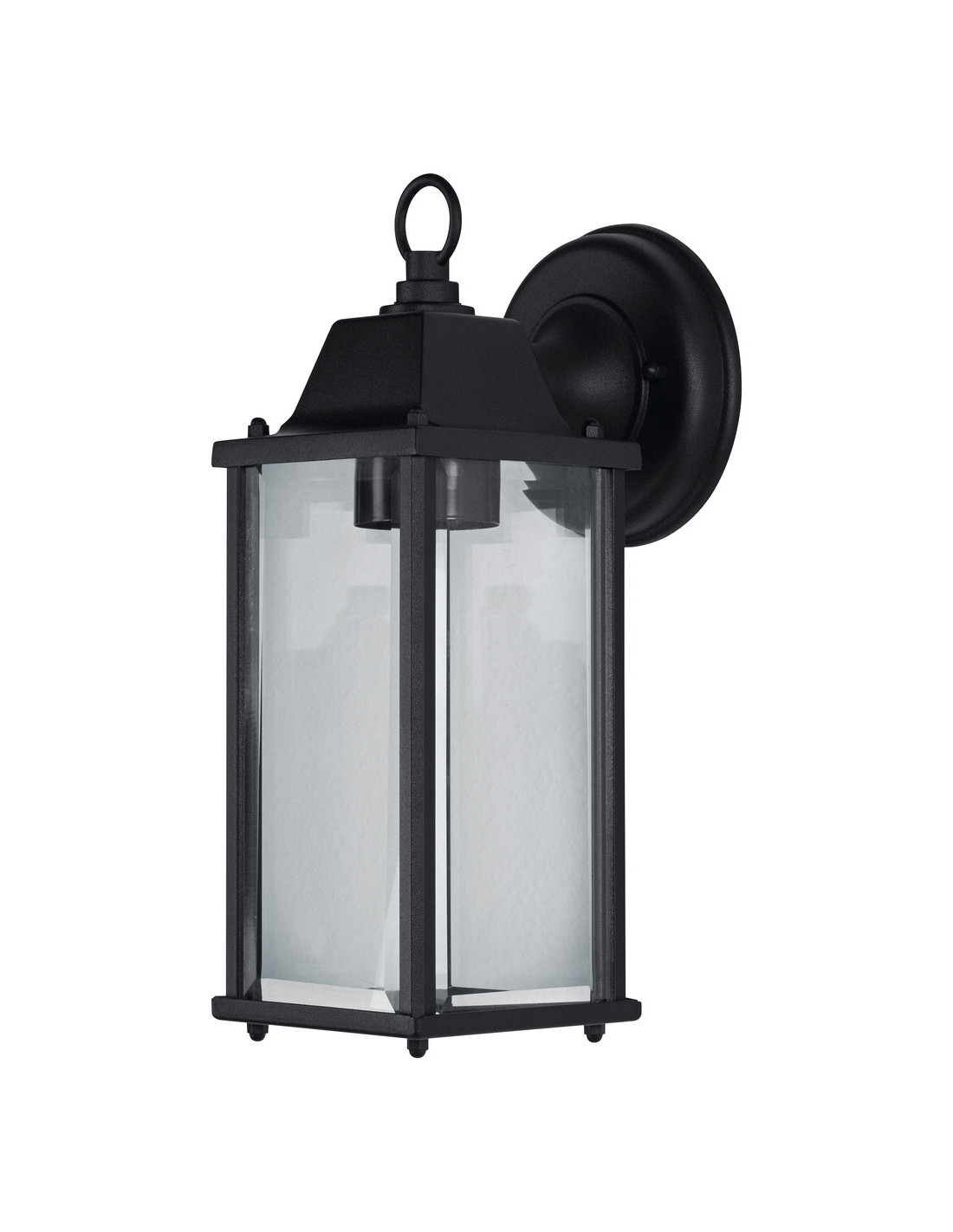 Ta lampa zewnętrzna ścienna została wykonana z trwałego aluminium w eleganckim czarnym kolorze. Szklany klosz podkreśla charakter oświetlenia i zapewnia estetyczne rozproszenie światła. Dzięki zastosowaniu popularnej oprawki E27 masz pełną swobodę wyboru żarówki – LED, dekoracyjnej lub klasycznej.