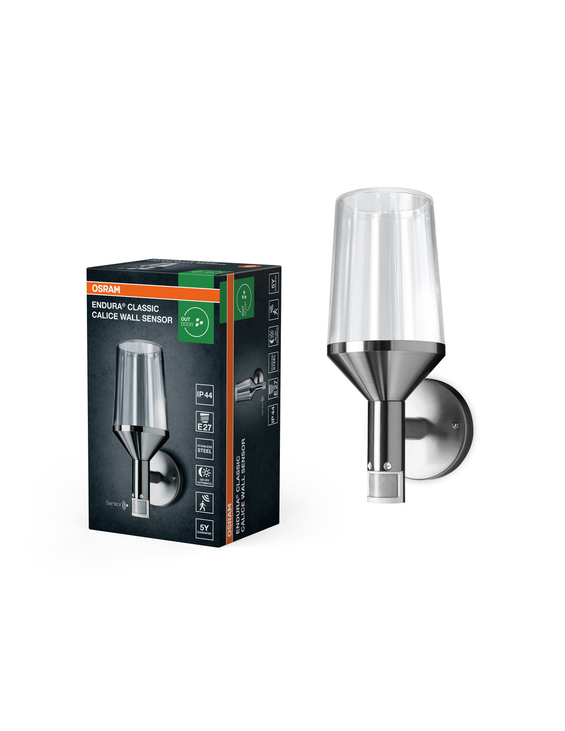 Cechy produktu: Dostępne w wersji z czujnikiem podczerwieni lub bez. Obudowa ze stali nierdzewnej. Stopień ochrony: IP44. Zalety produktu: Wysoka uniwersalność wyboru źródła światła dzięki trzonkowi E27. Łatwa i szybka instalacja. Obszary zastosowań: Elewacje budynków. Oświetlenie awaryjne. Patia, balkony. Oświetlenie ścieżek dla pieszych. Podjazdy. Wyposażenie / Akcesoria: Kompletne akcesoria do montażu i podłączenia w zestawie. Źródła światła nie są dostarczane w zestawie. Porady dotyczące bezpieczeństwa: Wszystkie podłączenia elektryczne muszą być wykonane przez osobę wykwalifikowaną.. Uwaga, ryzyko porażenia prądem.. Produkt w klasie ochrony I. Wszystkie przewodzące prąd, metalowe części obudowy, które mogą absorbować napięcie podczas pracy lub podczas konserwacji w przypadku awarii, muszą być stale PODŁĄCZONE do przewodu uziemiającego..
