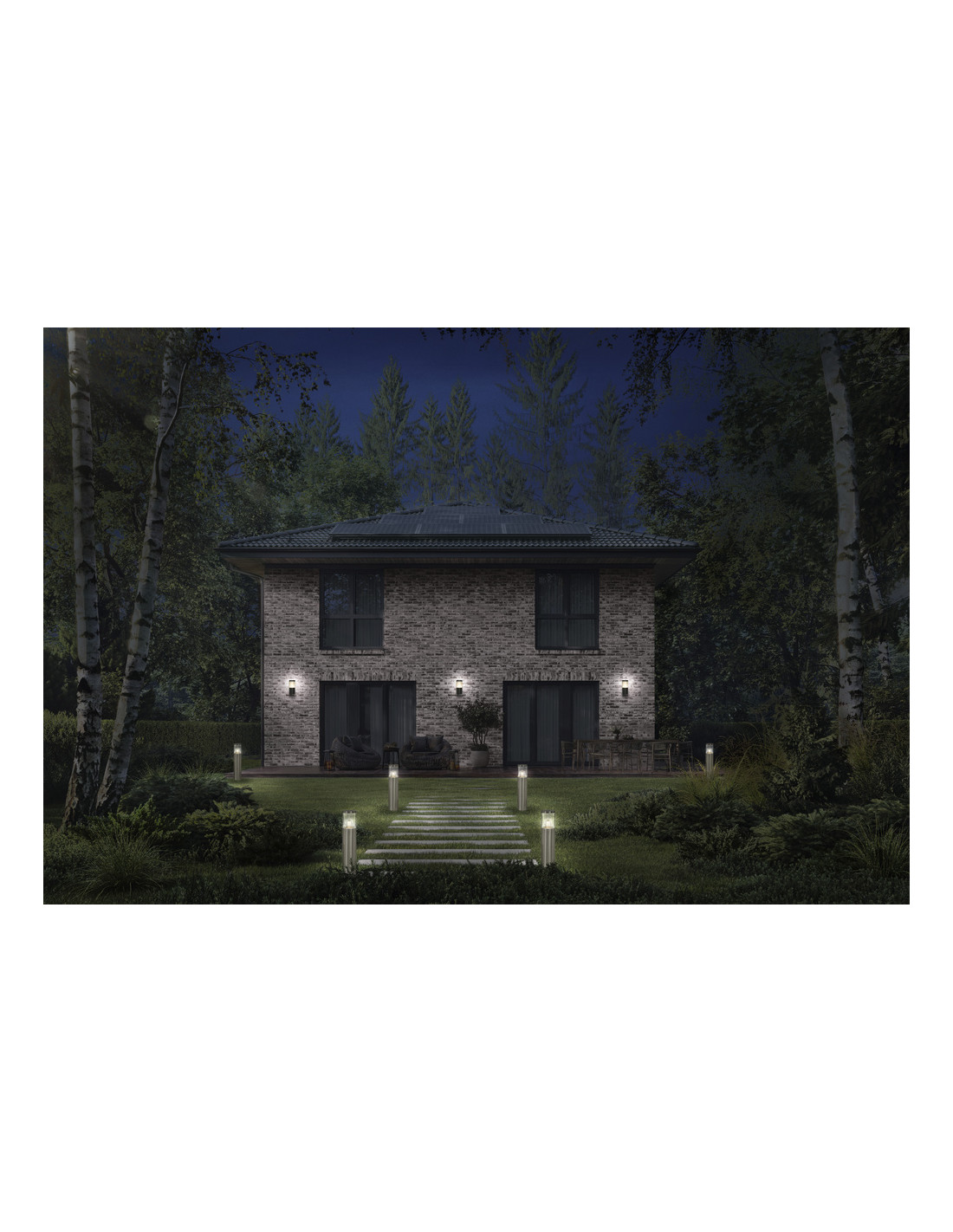 Cechy produktu: Dostępne opcje z czujnikiem ruchu PIR i czujnikiem światła dziennego. Obudowa ze stali nierdzewnej. Stopień ochrony: IP44. Zalety produktu: Wysoka uniwersalność wyboru źródła światła dzięki trzonkowi E27. Łatwa i szybka instalacja. Obszary zastosowań: Elewacje budynków. Oświetlenie awaryjne. Patia, balkony. Oświetlenie ścieżek dla pieszych. Podjazdy. Ogrody i inne tereny zewnętrzne. Wyposażenie / Akcesoria: Kompletne akcesoria do montażu i podłączenia w zestawie. Porady dotyczące bezpieczeństwa: Wszystkie podłączenia elektryczne muszą być wykonane przez osobę wykwalifikowaną.. Uwaga, ryzyko porażenia prądem.. Produkt w klasie ochrony I. Wszystkie przewodzące prąd, metalowe części obudowy, które mogą absorbować napięcie podczas pracy lub podczas konserwacji w przypadku awarii, muszą być stale PODŁĄCZONE do przewodu uziemiającego..