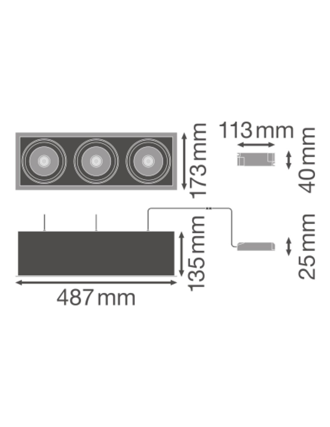 Cechy produktu: Duży fasetowany odbłyśnik zapewnia wysoki strumień świetlny. Kąt rozsyłu światła: 38°. Kąt regulacji zawieszenia kardanowego: ±25°. Zalety produktu: Niewielkie tętnienie światła dzięki specjalnemu statecznikowi elektronicznemu. Wysoka skuteczność świetlna. Ochrona przed innymi instalacjami w suficie dzięki zamkniętej obudowie z blachy stalowej. Łatwa wymiana zewnętrznego zasilacza dzięki wtyczce z zatrzaskiem bagnetowym. Funkcjonalna konstrukcja i minimalistyczny wygląd. 5-letnia gwarancja. Obszary zastosowań: Światło akcentujące i oświetlenie ogólne do wszystkich rodzajów salonów sprzedaży. Sklepy, butiki. Pokoje hotelowe. Kawiarnie. Wyposażenie / Akcesoria: Sterownik w komplecie. Porady dotyczące bezpieczeństwa: Wszystkie podłączenia elektryczne muszą być wykonane przez osobę wykwalifikowaną.. Uwaga, ryzyko porażenia prądem.. Oprawy nie nadają się do pokrywania materiałem termoizolacyjnym..