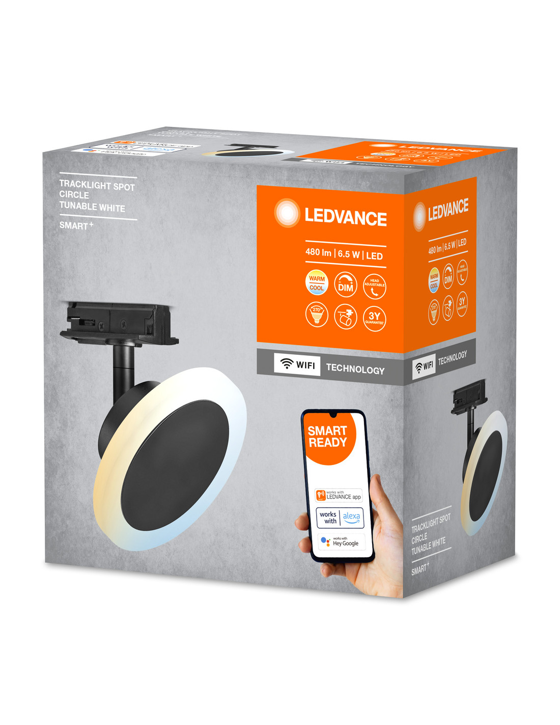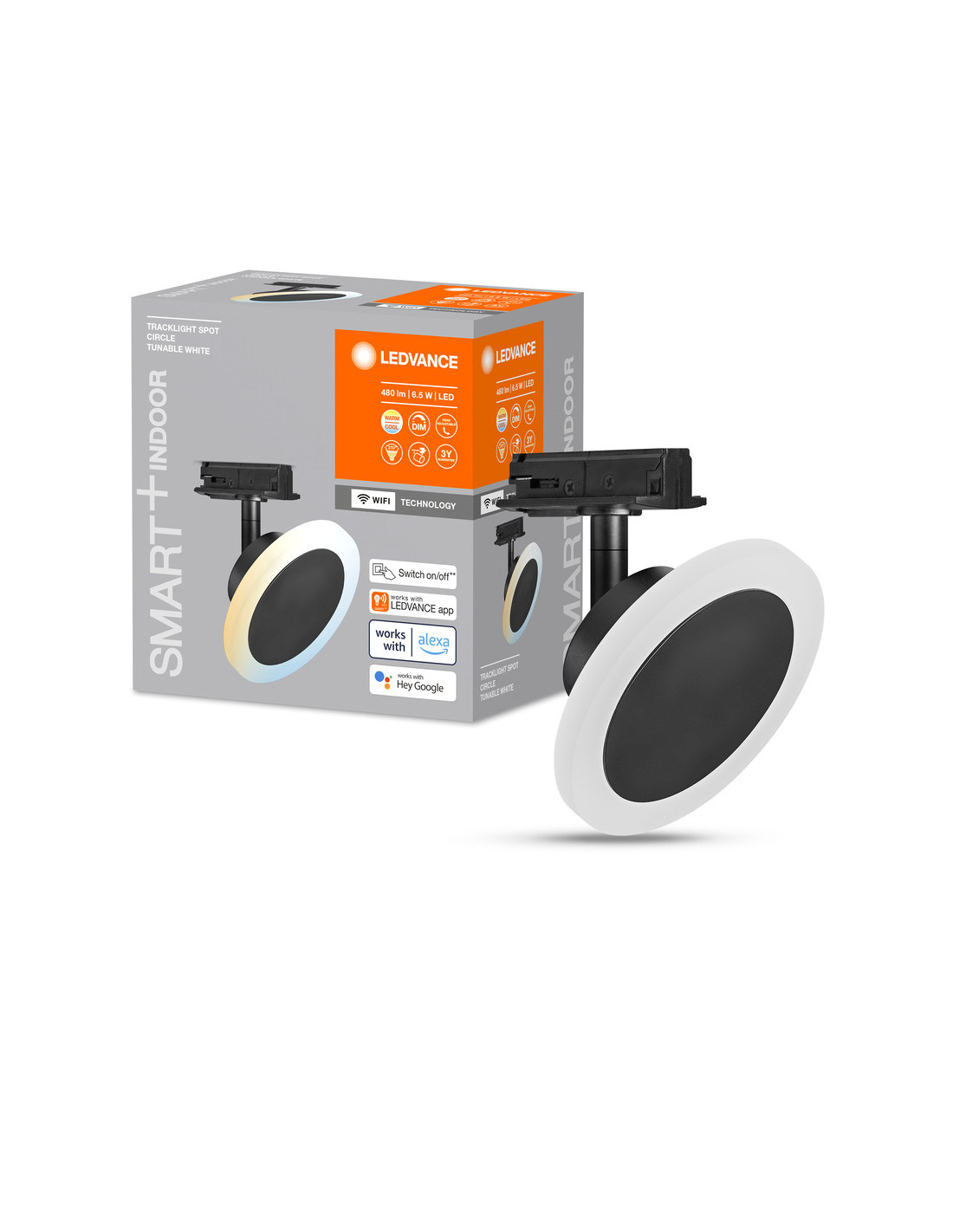 Cechy produktu: Konfigurowalny modułowy inteligentny system tracklight. Możliwość sterowania za pomocą aplikacji LEDVANCE SMART+ (z systemem Android co najmniej 8.0 lub iOS 14.0). Możliwość sterowania za pomocą głosu: Asystent Google lub Amazon Alexa. Protokół sieciowy: WiFi. Ściemnialne. Zalety produktu: Może być obracana i pochylana dla uzyskania optymalnego oświetlenia. Tworzenie indywidualnych scen świetlnych zgodnie z własnymi potrzebami o barwie światła od ciepłobiałej do białej (od 3000K do 6500K).