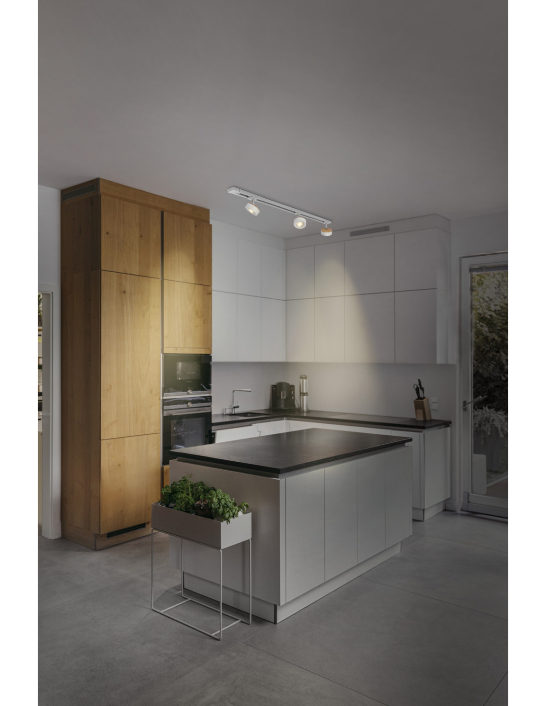Cechy produktu: Regulowany kąt obrotu. Temperatura barwowa: 3000 K. Łatwa obsługa i instalacja. Zalety produktu: Reflektory regulowane w dowolnym kierunku. Ponadczasowa stylistyka. Obszary zastosowań: Pomieszczenia prywatne (pokoje dzienne, jadalnie, sypialnie itp.). Porady dotyczące bezpieczeństwa: Podczas przeprowadzania instalacji i czynności serwisowych oraz zdejmowania klosza oprawę oświetleniową należy odłączyć od zasilania. Sprawdź przydatność ściany i sufitu. Jeśli nie jesteś pewien, zasięgnij profesjonalnej porady.. Wszystkie podłączenia elektryczne muszą być wykonane przez osobę wykwalifikowaną.. Uwaga, ryzyko porażenia prądem..