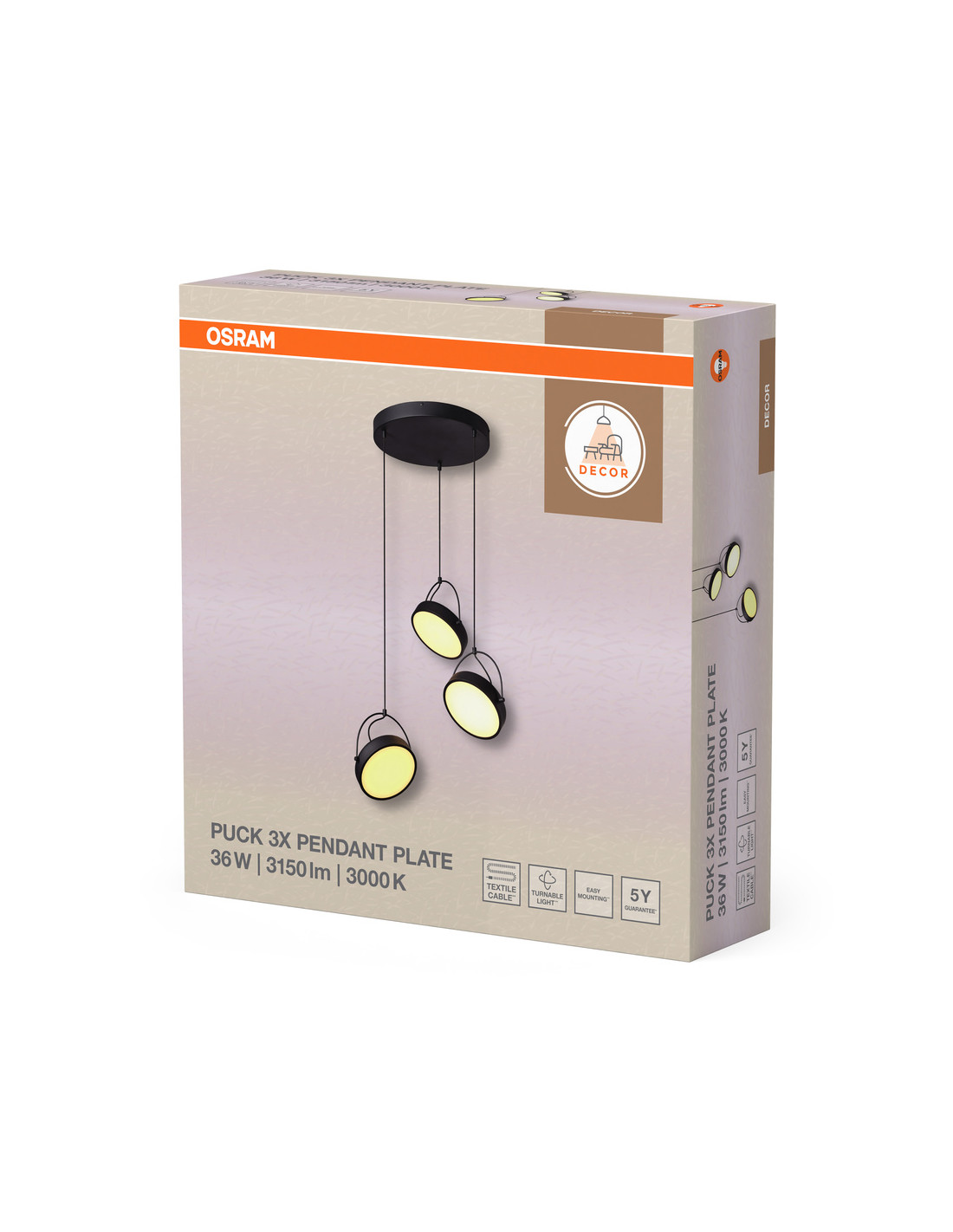 LAMPA WISZĄCA DECOR PUCK 3XPENDANT PL 30W 930 BK