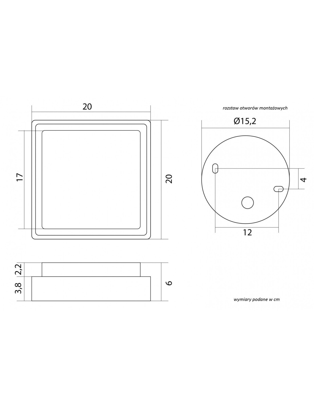 BENI PLAFON ZEWNĘTRZNY LED 18W 4000K 1069LM KWADRAT 20cm x 20cm CIEMNY POPIEL BN-KW200 SU-MA