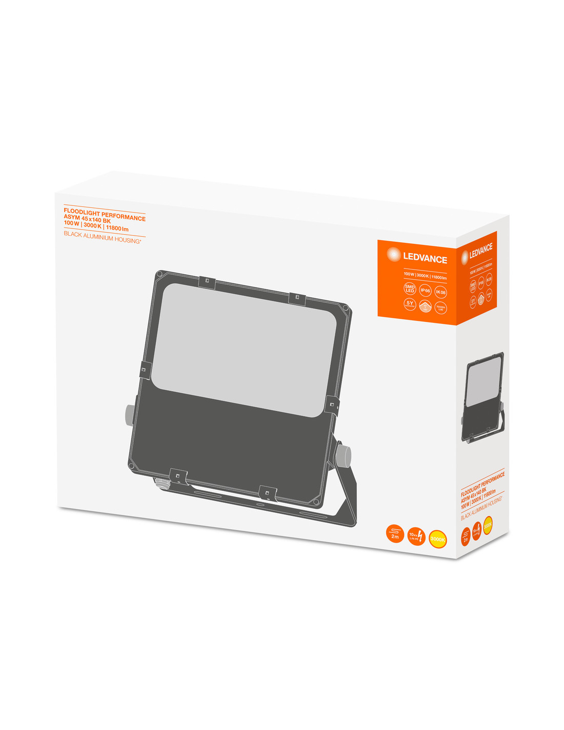 Cechy produktu: Wysoka skuteczność świetlna: do 140 lm / W. Asymetryczny rozsył strumienia świetlnego do oświetlenia przestrzeni. Montaż pod kątem (45°) i maks. odchylenie do 180°. Stopień ochrony: IP66. Odporność na uderzenia: IK08. Temperatura otoczenia podczas pracy: -30…+50°C. Wysokie zabezpieczenie przeciwprzepięciowe: do 10 kV (L/N-PE), 6 kV (L-N). Zintegrowany odpowietrznik zapobiegający kondensacji wody wewnątrz oprawy oświetleniowej. Podłączenie za pomocą przewodu o dł. 2 m, wymagane okablowanie. Zalety produktu: Oszczędność energii aż do 90% (w porównaniu z naświetlaczami z lampami halogenowymi). Oszczędność energii do 45 % w porównaniu z oprawami oświetleniowymi wykorzystującymi konwencjonalne lampy wyładowcze. Jasna, odporna i trwała. Równomierny rozsył strumienia świetlnego i obniżone olśnienie. Brak górnego współczynnika rozsyłu światła (ULOR 0%) w przypadku zamontowania pod kątem 0°. Otwór zapewniający łatwą instalację. 5-letnia gwarancja. Obszary zastosowań: Bezpośredni zamiennik opraw oświetleniowych wykorzystujących lampy wyładowcze. Zastosowania zewnętrzne (IP66). Parking. Strefy publiczne. Przemysł. Obiekty sportowe. Parkingi, drogi przemysłowe. Konstrukcja zgodna z normą EN 60598-2-24 dotyczącą zagrożenia pożarowego, np. poprzez nagromadzenie pyłów. Porady dotyczące bezpieczeństwa: Wszystkie podłączenia elektryczne muszą być wykonane przez osobę wykwalifikowaną.. Zewnętrzny elastyczny przewód lub przewód znajdujący się w oprawie oświetleniowej nie podlega wymianie; jeśli przewód ulegnie uszkodzeniu, oprawa zostanie zniszczona.. Blok zaciskowy nie jest dołączony. Montaż musi być wykonany przez osobę wykwalifikowaną.. Uwaga, ryzyko porażenia prądem.. Produkt w klasie ochrony I. Wszystkie przewodzące prąd, metalowe części obudowy, które mogą absorbować napięcie podczas pracy lub podczas konserwacji w przypadku awarii, muszą być stale PODŁĄCZONE do przewodu uziemiającego..