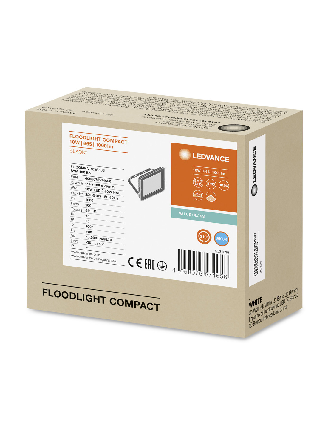 NAŚWIETLACZ FLOOD COMPACT V 10W/6500K SYM 1000LM BK IP65