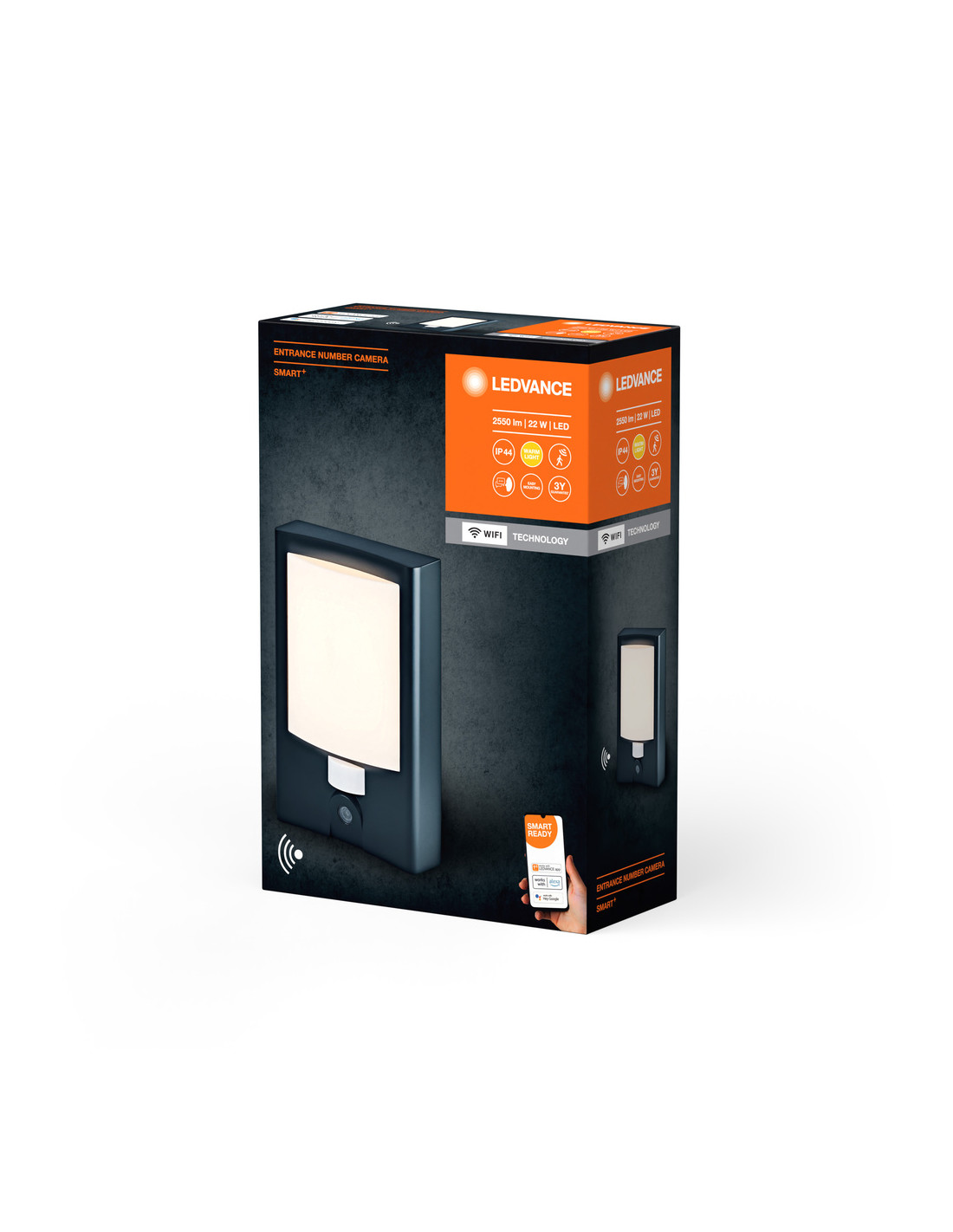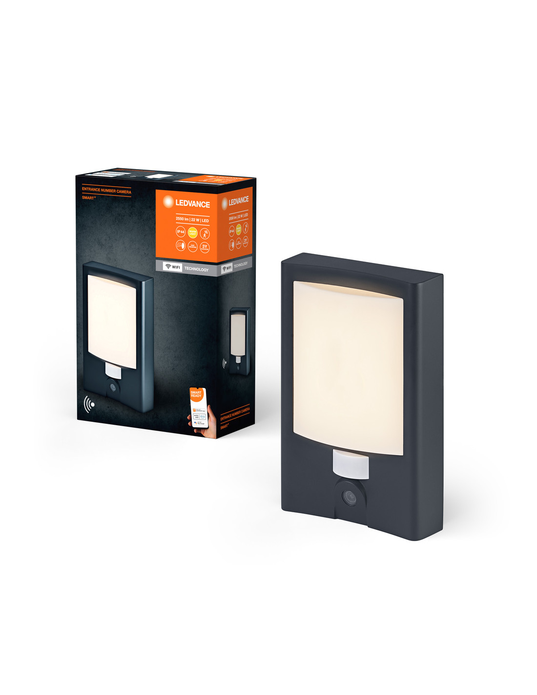 Cechy produktu: Możliwość sterowania za pomocą aplikacji LEDVANCE SMART+ (z systemem Android co najmniej 8.0 lub iOS 14.0). Możliwość sterowania za pomocą głosu: Asystent Google lub Amazon Alexa. Wbudowany głośnik i syrena alarmowa. Ściemnialne. Temperatura barwowa: 3000 K (Warm White - ciepłobiała). Protokół sieciowy: WiFi. Stopień ochrony: IP44. Kamera HD. Zalety produktu: Łatwa i szybka instalacja. Zwiększone poczucie bezpieczeństwa dzięki wysokiej jasności. Zarejestrowane dane są zapisywane na karcie pamięci urządzenia lub w chmurze. Materiały wysokiej jakości. Obszary zastosowań: Zastosowania zewnętrzne (IP44). Garaże. Strefy wejściowe. Wyposażenie / Akcesoria: Do sterowania za pomocą aplikacji LEDVANCE SMART+ wymagany jest smartfon lub tablet (z systemem Android co najmniej 8.0 lub iOS 14.0). Śruby i kołki montażowe dostarczone w zestawie. Porady dotyczące bezpieczeństwa: Wszystkie podłączenia elektryczne muszą być wykonane przez osobę wykwalifikowaną.. Uwaga, ryzyko porażenia prądem.. Sprawdź przydatność ściany i sufitu. Jeśli nie jesteś pewien, zasięgnij profesjonalnej porady..