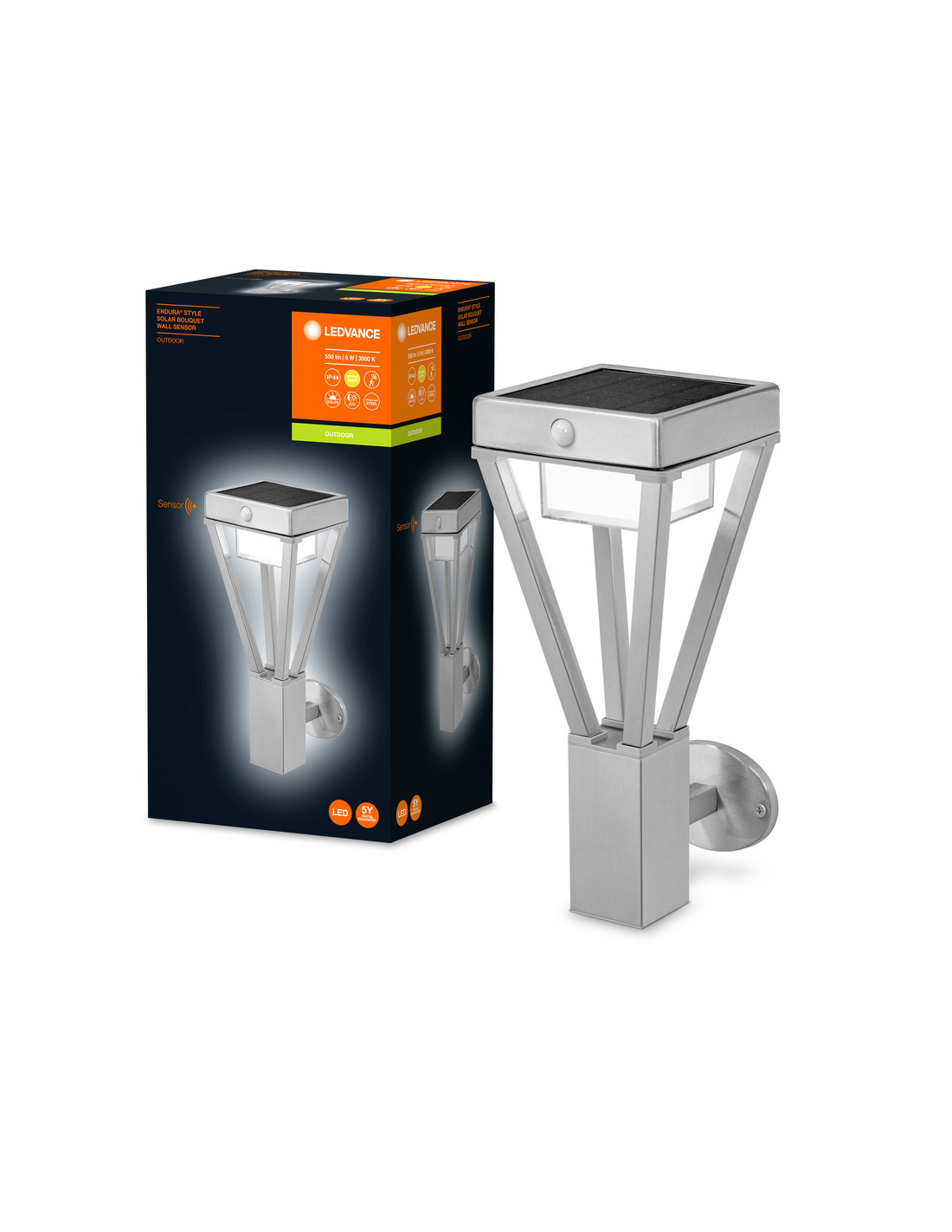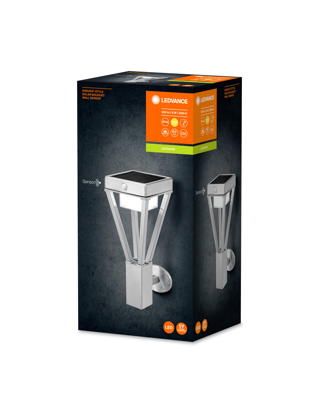KINKIET ZEWNĘTRZNY SOLAR ENDURA STYLE BOUQUET WALL SENSOR 6W 550LM STAL NIERDZEWNA