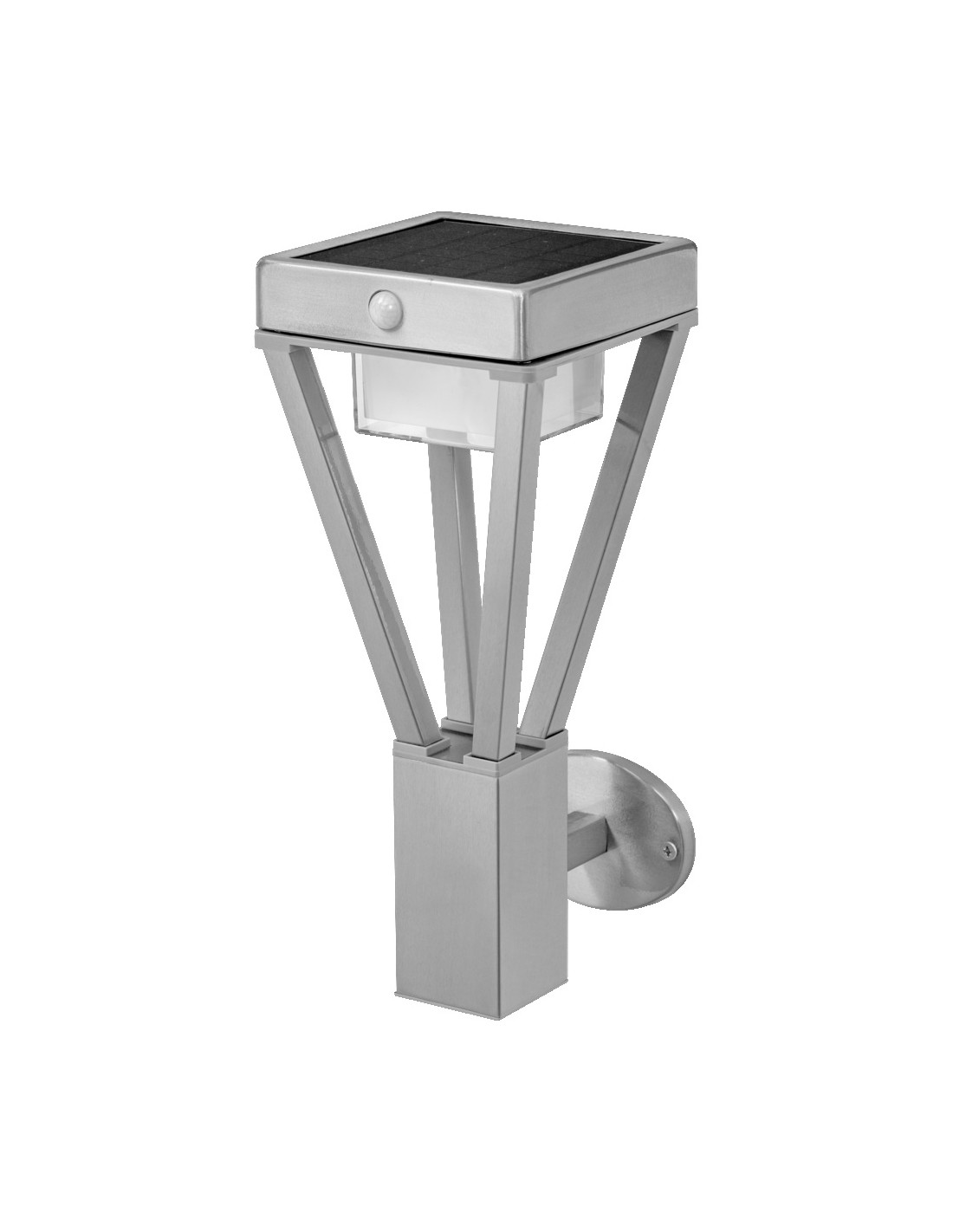 Cechy produktu: Oprawy oświetleniowe LED do użytku zewnętrznego zasilane energią słoneczną. Czujnik ruchu PIR i czujnik światła. Do wyboru 3 tryby pracy. Tryb pracy 1: światło ciągłe przy strumieniu świetlnym 200 lm (maks. 2,5 godziny przy pełnym naładowaniu). Tryb pracy 2: światło ciągłe przy strumieniu świetlnym 75 lm (maks. 8 godzin przy pełnym naładowaniu), przełącza się na 300 lm podczas ruchu (maks. 100 razy przy pełnym naładowaniu). Tryb pracy 3: światło wyłączone, włącza się podczas ruchu, strumień świetlny 550 lm (maks. 100 razy świeci przy pełnym naładowaniu). Ładowanie baterii poprzez panel słoneczny. Technologia baterii: litowo-jonowa. Obudowa ze stali nierdzewnej. Zalety produktu: Oświetlenie zgodne z zapotrzebowaniem i oszczędność energii zapewnia czujnik ruchu i światła. Łatwa regulacja w zależności od dostępnego światła dziennego i ruchu za pomocą przycisku. Wydajne energetycznie dzięki technologii LED. Łatwa i szybka instalacja. Obszary zastosowań: Zastosowania zewnętrzne (IP44). Miejsca, w których nie jest dostępne zasilanie sieciowe. Wyposażenie / Akcesoria: Kompletne akcesoria do montażu i podłączenia w zestawie. Porady dotyczące bezpieczeństwa: Jeśli komora baterii (jeśli dotyczy) nie zamyka się bezpiecznie, zaprzestań używania produktu i trzymaj go z dala od dzieci. Jeśli podejrzewasz, że baterie mogły zostać połknięte lub umieszczone w jakiejkolwiek części ciała, natychmiast zwróć się o pomoc lekarską.. Prosimy unikać: Maksymalna temperatura otoczenia: +35 °C. Wymiana baterii na nieprawidłowy typ, który może obejść zabezpieczenie (na przykład w przypadku niektórych typów baterii litowych). Wysokość podczas pracy: 2000 m. Utylizacja baterii w ogniu lub gorącym piekarniku, lub mechaniczne zgniatanie lub cięcie baterii, co może spowodować wybuch..