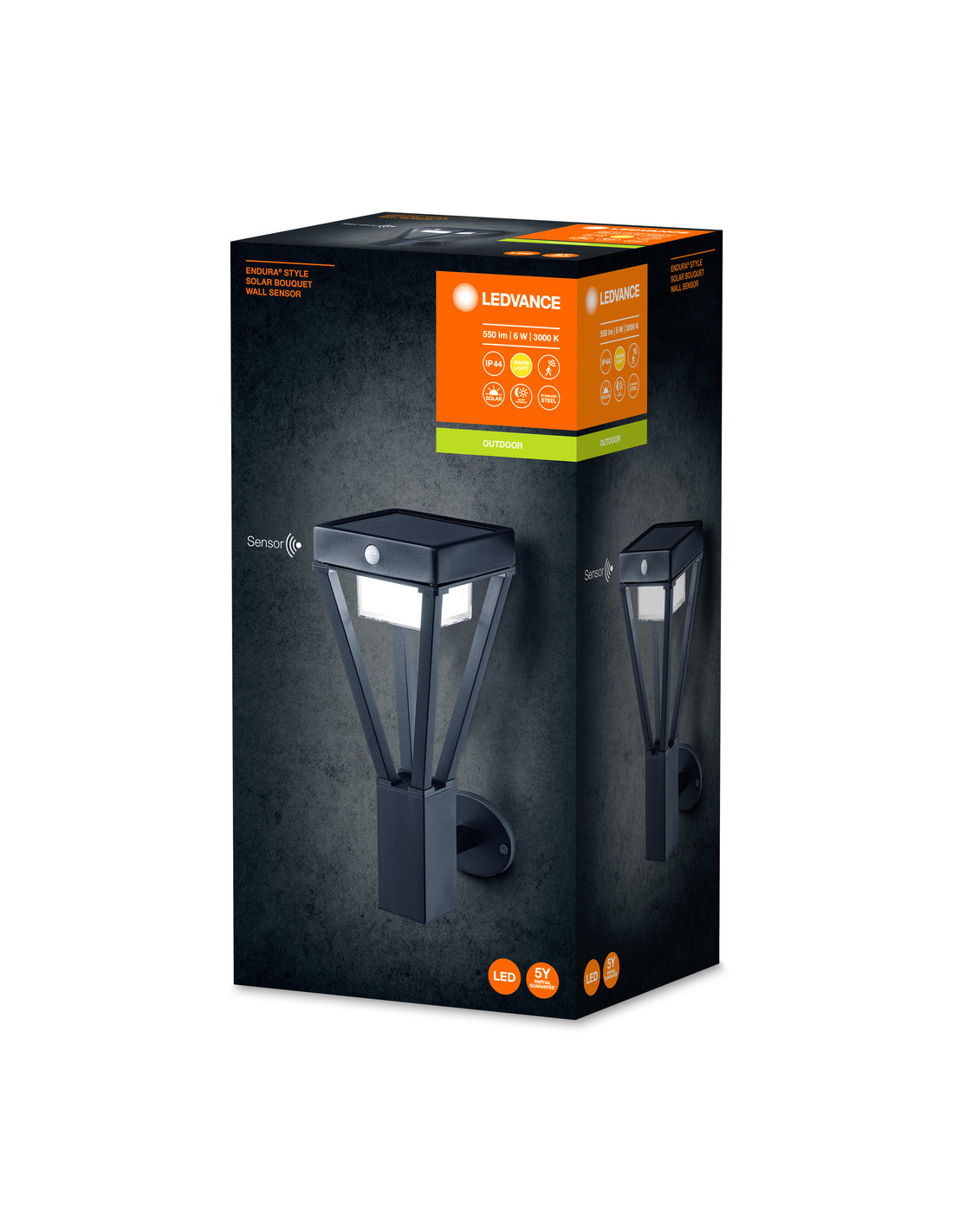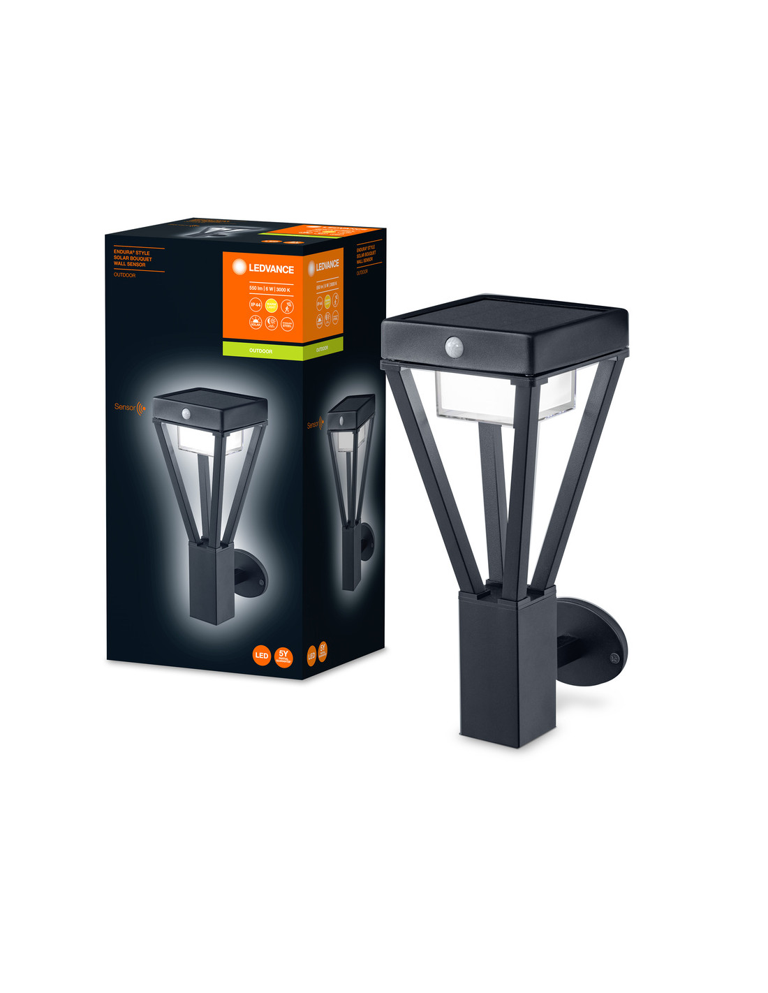 KINKIET ZEWNĘTRZNY SOLAR ENDURA STYLE BOUQUET WALL SENSOR 6W 550LM BLACK