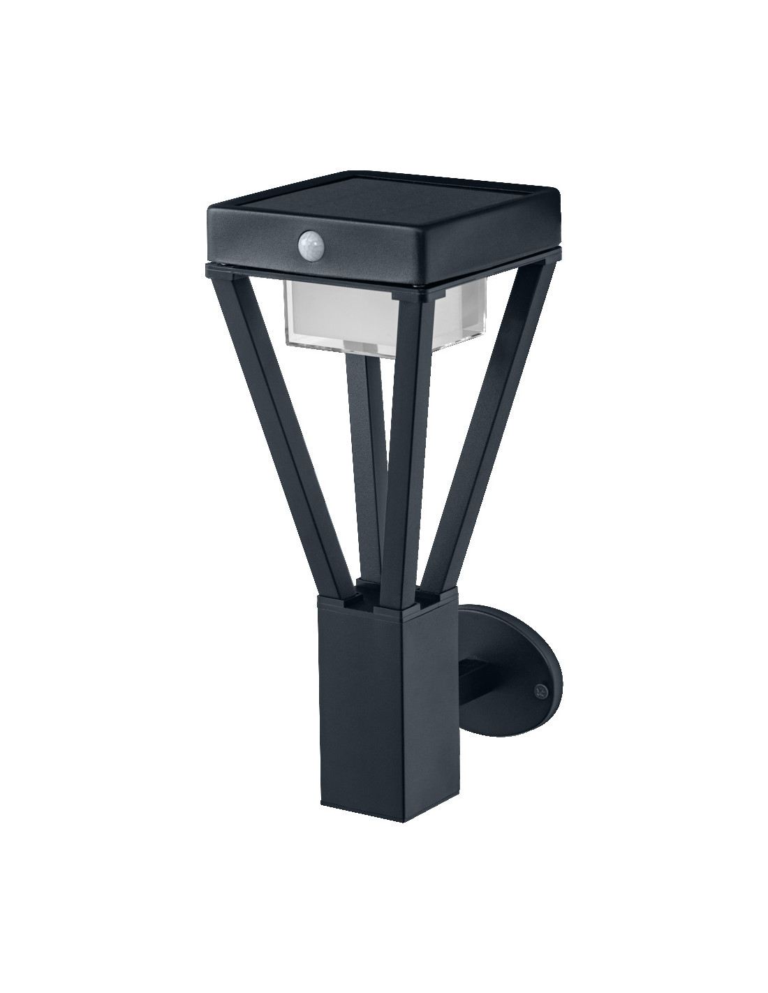 Cechy produktu: Oprawy oświetleniowe LED do użytku zewnętrznego zasilane energią słoneczną. Czujnik ruchu PIR i czujnik światła. Do wyboru 3 tryby pracy. Tryb pracy 1: światło ciągłe przy strumieniu świetlnym 200 lm (maks. 2,5 godziny przy pełnym naładowaniu). Tryb pracy 2: światło ciągłe przy strumieniu świetlnym 75 lm (maks. 8 godzin przy pełnym naładowaniu), przełącza się na 300 lm podczas ruchu (maks. 100 razy przy pełnym naładowaniu). Tryb pracy 3: światło wyłączone, włącza się podczas ruchu, strumień świetlny 550 lm (maks. 100 razy świeci przy pełnym naładowaniu). Ładowanie baterii poprzez panel słoneczny. Technologia baterii: litowo-jonowa. Obudowa ze stali nierdzewnej. Zalety produktu: Oświetlenie zgodne z zapotrzebowaniem i oszczędność energii zapewnia czujnik ruchu i światła. Łatwa regulacja w zależności od dostępnego światła dziennego i ruchu za pomocą przycisku. Wydajne energetycznie dzięki technologii LED. Łatwa i szybka instalacja. Obszary zastosowań: Zastosowania zewnętrzne (IP44). Miejsca, w których nie jest dostępne zasilanie sieciowe. Wyposażenie / Akcesoria: Kompletne akcesoria do montażu i podłączenia w zestawie. Porady dotyczące bezpieczeństwa: Jeśli komora baterii (jeśli dotyczy) nie zamyka się bezpiecznie, zaprzestań używania produktu i trzymaj go z dala od dzieci. Jeśli podejrzewasz, że baterie mogły zostać połknięte lub umieszczone w jakiejkolwiek części ciała, natychmiast zwróć się o pomoc lekarską.. Prosimy unikać: Maksymalna temperatura otoczenia: +35 °C. Wymiana baterii na nieprawidłowy typ, który może obejść zabezpieczenie (na przykład w przypadku niektórych typów baterii litowych). Wysokość podczas pracy: 2000 m. Utylizacja baterii w ogniu lub gorącym piekarniku, lub mechaniczne zgniatanie lub cięcie baterii, co może spowodować wybuch..
