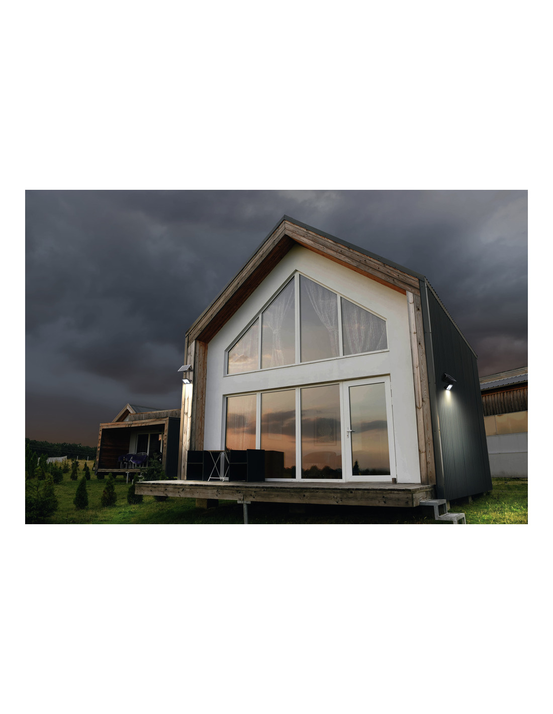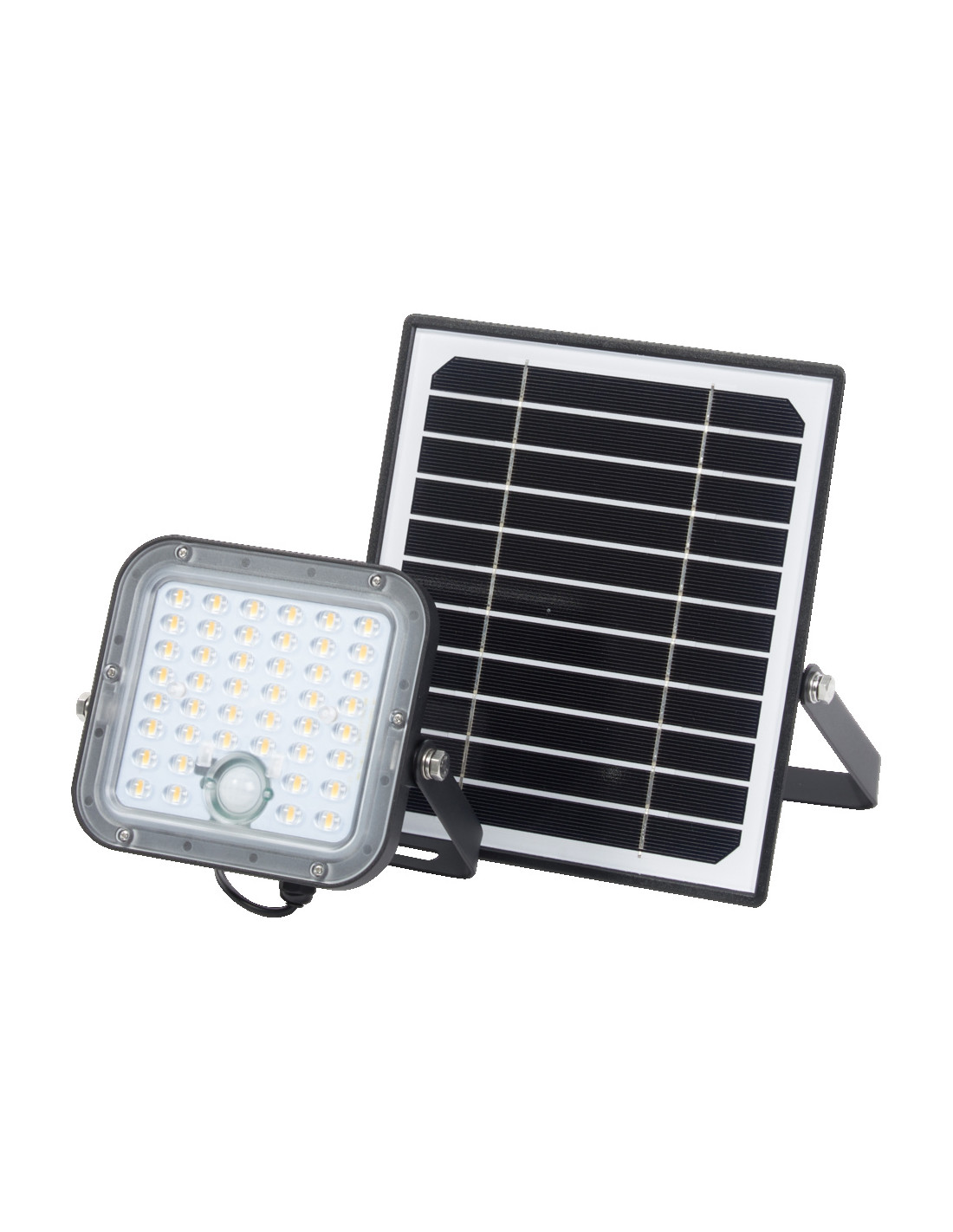 Cechy produktu: Oprawy oświetleniowe LED do użytku zewnętrznego zasilane energią słoneczną. Czujnik ruchu PIR i czujnik światła. Ładowanie akumulatora poprzez zewnętrzny panel słoneczny. Pilot do zaawansowanych ustawień czujnika. Naświetlacz i panel słoneczny są połączone za pomocą przewodu o długości 5 m. Zalety produktu: Ekologiczna oprawa zasilana energią słoneczną;. Wydajne energetycznie dzięki technologii LED. Naświetlacz można zamontować niezależnie od panelu słonecznego. Obszary zastosowań: Na zewnątrz. Garaże. Elewacje budynków. Domki ogrodowe. Wyposażenie / Akcesoria: Kompletne akcesoria do montażu i podłączenia w zestawie. Przewód połączeniowy o długości 5 m. Pilot w zestawie. Porady dotyczące bezpieczeństwa: Ostrzeżenie dotyczące baterii: Przechowywać poza zasięgiem dzieci. Połknięcie może prowadzić do oparzeń chemicznych, perforacji tkanek miękkich i śmierci. Ciężkie oparzenia mogą wystąpić w ciągu 2 godzin od połknięcia. Natychmiast zasięgnij porady lekarza. . Jeśli komora baterii (jeśli dotyczy) nie zamyka się bezpiecznie, zaprzestań używania produktu i trzymaj go z dala od dzieci. Jeśli podejrzewasz, że baterie mogły zostać połknięte lub umieszczone w jakiejkolwiek części ciała, natychmiast zwróć się o pomoc lekarską.. Prosimy unikać: Maksymalna temperatura otoczenia: +35 °C. Wymiana baterii na nieprawidłowy typ, który może obejść zabezpieczenie (na przykład w przypadku niektórych typów baterii litowych). Wysokość podczas pracy: 2000 m. Utylizacja baterii w ogniu lub gorącym piekarniku, lub mechaniczne zgniatanie lub cięcie baterii, co może spowodować wybuch..