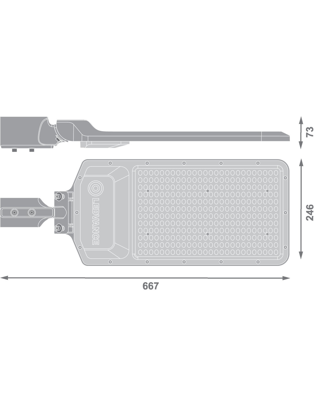 Cechy produktu: Klasa ochronności: I. Trwałość (L70/B50): 50 tys. godzin (przy 25°C). Dostępny kolor obudowy szary i czarny. Dostępne wersje o temperaturze barwowej światła: 3000 K, 4000 K, 6500 K. Stopień ochrony: IP65. Odporność na udar: IK07. 5 lat gwarancji. Zalety produktu: Atrakcyjny wygląd i funkcjonalna konstrukcja. Niewielkie tętnienie światła dzięki specjalnemu statecznikowi elektronicznemu. Oszczędność energii dzięki skuteczności świetlnej systemu na poziomie 120 lm/W. Jasna, odporna i trwała. Obszary zastosowań: Zamiennik do opraw z lampami rtęciowymi lub metalohalogenkowymi. Parki. Osiedla. Strefy publiczne. Oświetlenie przestrzeni.