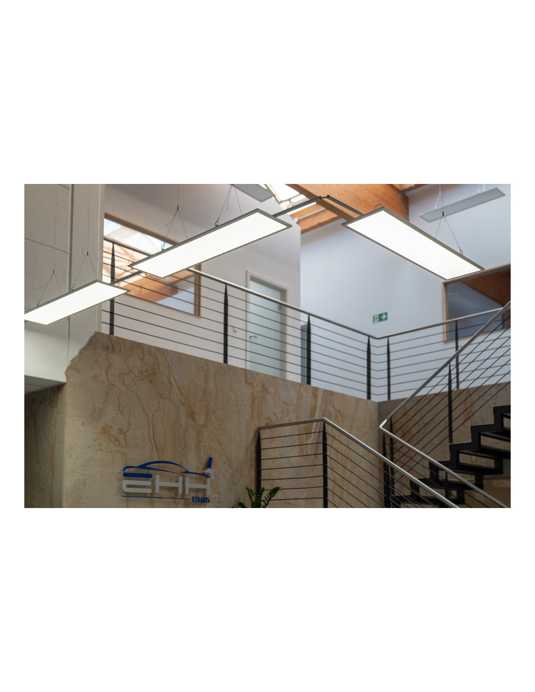 Obszar zastosowań: Bezpośredni zamiennik opraw świetlówkowych. Biura, sale konferencyjne. Recepcje, hole, korytarze, windy. Nadaje się do systemów sufitów podwieszanych o rozmiarze rastra 1200 x 300 mm. Wyposażenie / Akcesoria: Dostępne są akcesoria do kilku typów montażu. Puszka podłączeniowa ze złączem 5-stykowym (w zestawie). Linka zabezpieczająca oprawę oświetleniową w zestawie. Wstępnie zainstalowane wsporniki zabezpieczające. Stateczniki zewnętrzne w zestawie. Dostępne oddzielne przedłużenie przewodu DC Twist Lock. Nadaje się do użytku z Emergency Conversion Box.