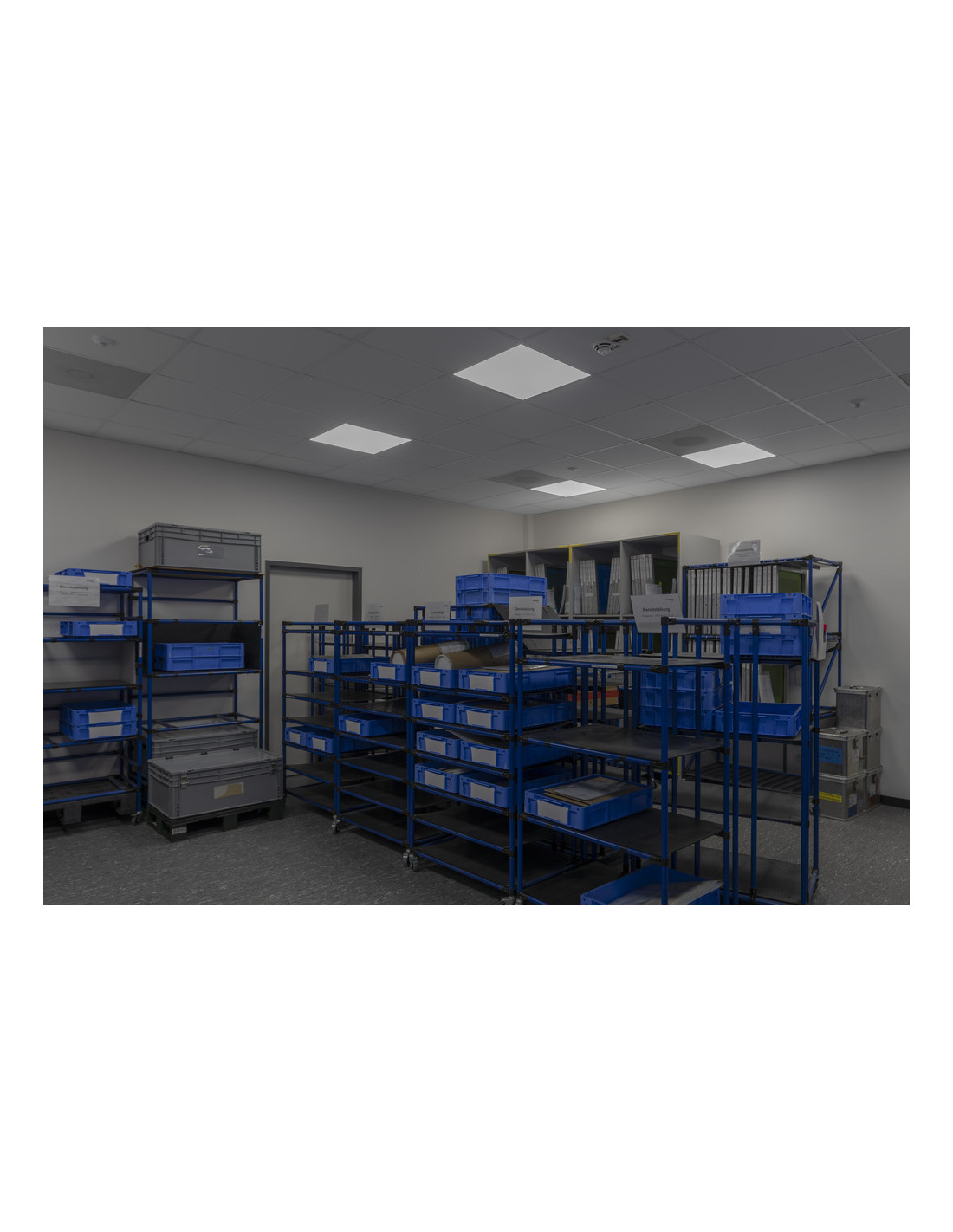 Cechy produktu: Rama z wytłaczanego aluminium. Dyfuzor z polistyrenu. 5-biegunowa listwa zaciskowa, przekrój przewodu do 5 x 2,5 mm. Dostępne wersje opraw ze sterownikiem DALI-2 obsługującym IoT. Dostępne wersje z Ra 90. Trwałość (L80/B10): 70 000 h (przy 25°C). Zalety produktu: Wysoce wszechstronny dzięki wybieranym stopniom mocy (Power Select - PS) na sterowniku. Instalacja elektryczna bez użycia narzędzi za pomocą wtyków. Możliwe wewnętrzne okablowanie dzięki dostarczonej w zestawie puszce podłączeniowej. Oszczędność energii dzięki wysokiej skuteczności świetlnej systemu: do 130 lm/W. Dobra redukcja olśnienia (UGR < 19). Wysoka jednorodność barw dzięki SDCM 3. W przypadku wersji DALI możliwe są opcje rozszerzone, takie jak monitorowanie zużycia energii i zdalna konserwacja. Zewnętrzny zasilacz zwiększa uniwersalność i zapewnia łatwą instalację. Niewielkie tętnienie światła dzięki specjalnemu statecznikowi elektronicznemu. Funkcja oświetlenia awaryjnego dzięki układowi konwersji na oświetlenie awaryjne firmy LEDVANCE. 5-letnia gwarancja. Obszary zastosowań: Bezpośredni zamiennik opraw świetlówkowych. Biura, sale konferencyjne. Recepcje, hole, korytarze, windy. Odpowiednie oprawy do zabudowy w suficie, moduł 625 x 625 mm. Wyposażenie / Akcesoria: Dostępne są akcesoria do kilku typów montażu. Puszka podłączeniowa ze złączem 5-stykowym (w zestawie). Wstępnie zainstalowane wsporniki zabezpieczające. Stateczniki zewnętrzne w zestawie. Nadaje się do użytku z Emergency Conversion Box.