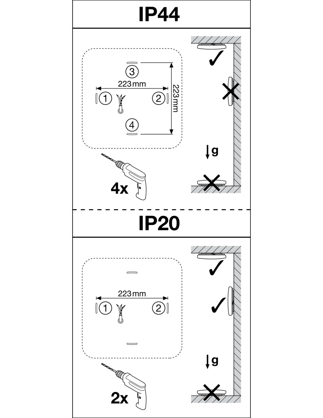 - Stopień ochrony (IP) IP44