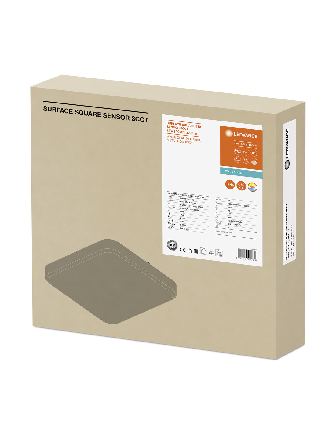 PLAFON LED SURFACE SQUARE 330 SENSOR VALUE 24W 3CCT 2000LM IP44
