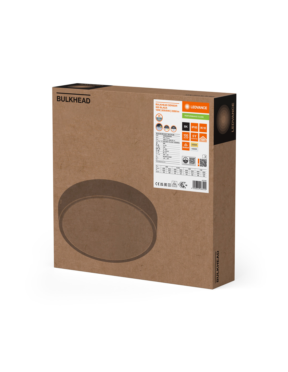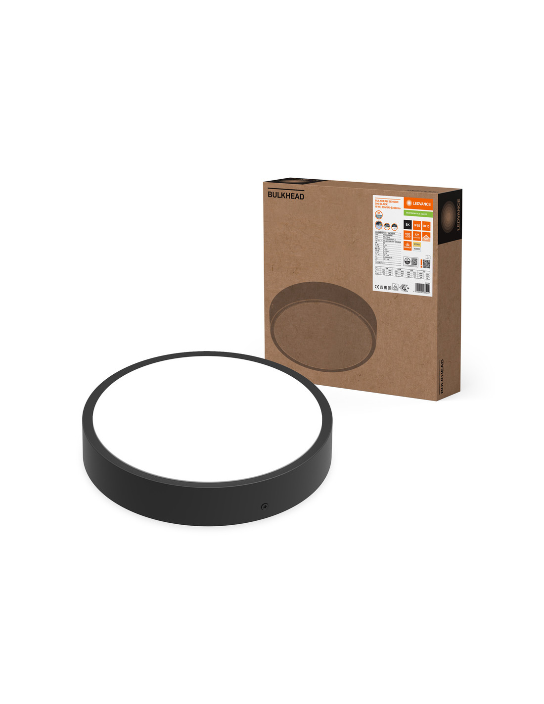 SURFACE BULKHEAD ROUND SENSOR 300 P 17,5W/15,5W/13W/11W 3000K/4000K 126LM/W BK IP65