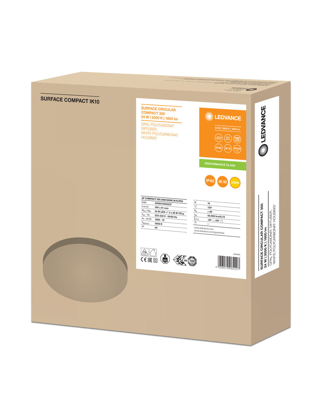 PLAFON SURFACE COMPACT 300 24W/3000K IK10 IP65