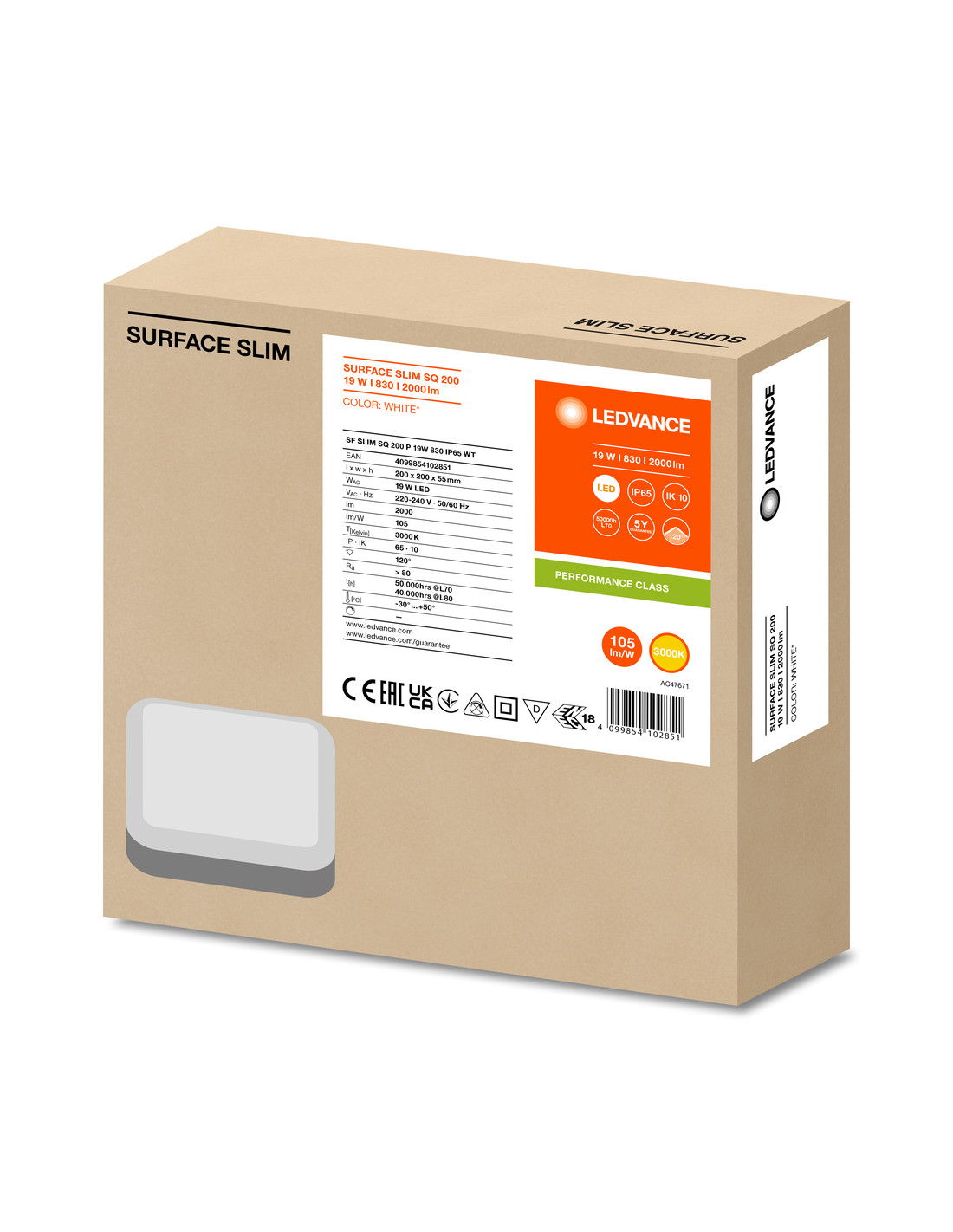 PLAFON SURFACE SLIM SQ 200 P 19W 3000K ciepła biała IP65 IK10