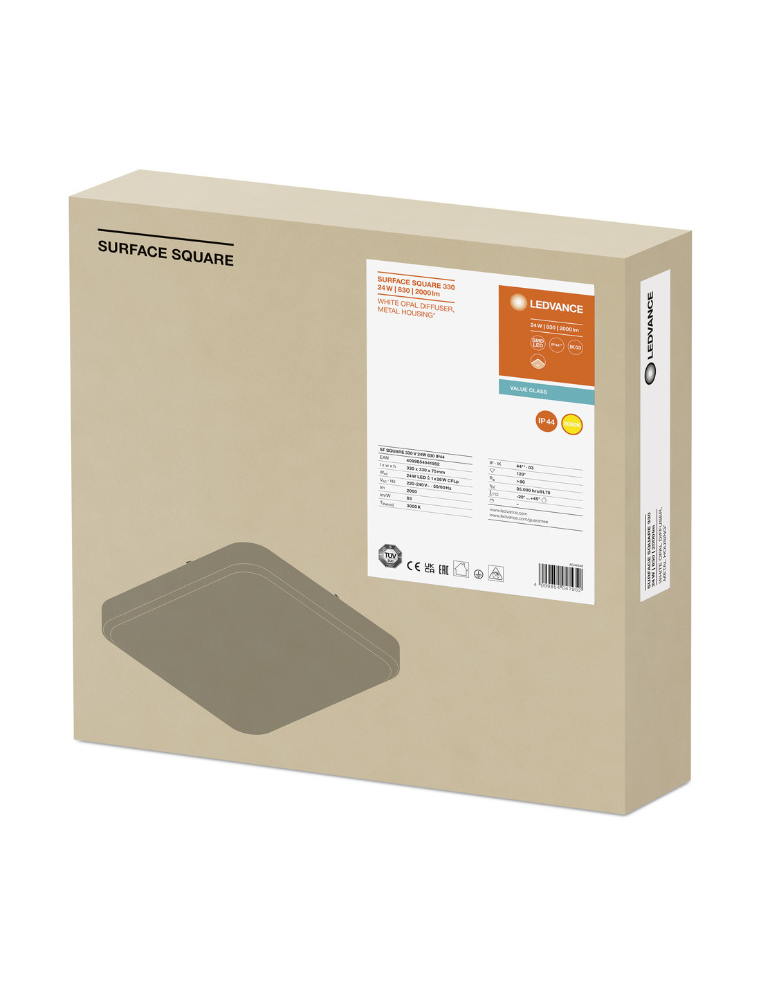 PLAFON LED SURFACE SQUARE 330 VALUE 24W 3000K ciepła biała 2000LM IP44