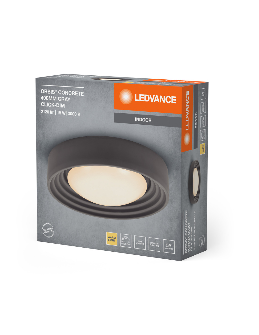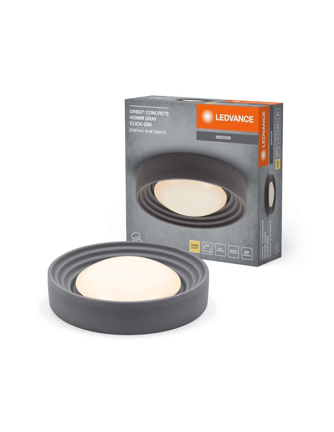 PLAFON LED ORBIS CONCRETE 400MM 18W 3000K ciepła biała CLICK DIM GRAY