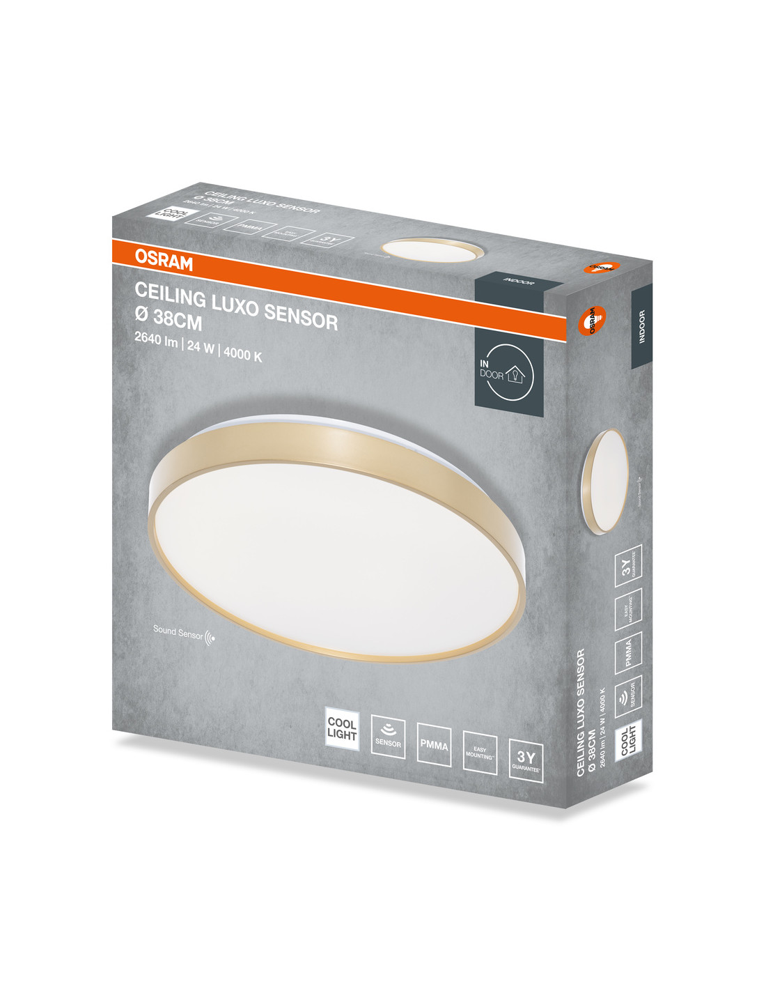 PLAFON LED CEILING LUXO SENSOR 380 24W 4000K 1320LM IP20 GOLD