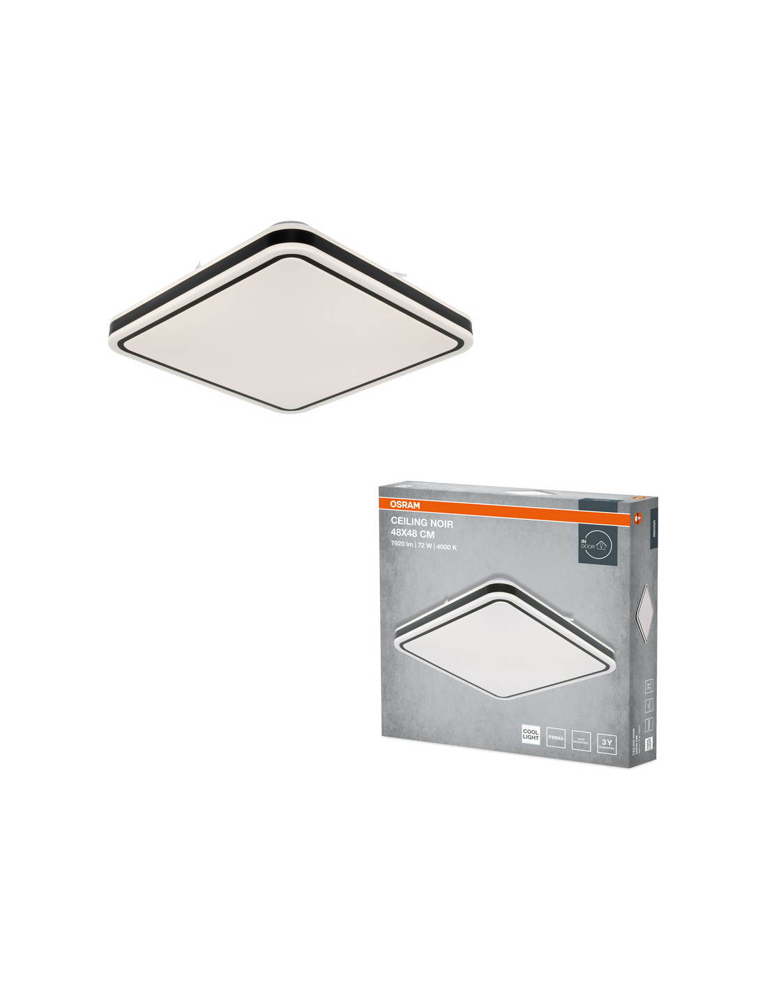 PLAFON LED CEILING NOIR SQUARE 480 72W 4000K 4320LM IP20 BK
