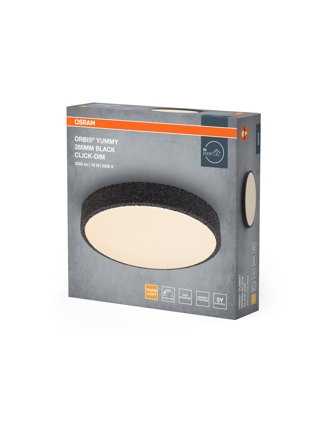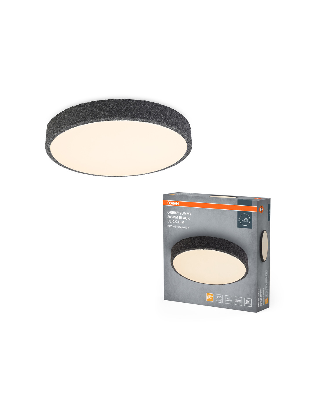 PLAFON LED ORBIS YUMMY 285MM 16W 830 CLICK DIM BK