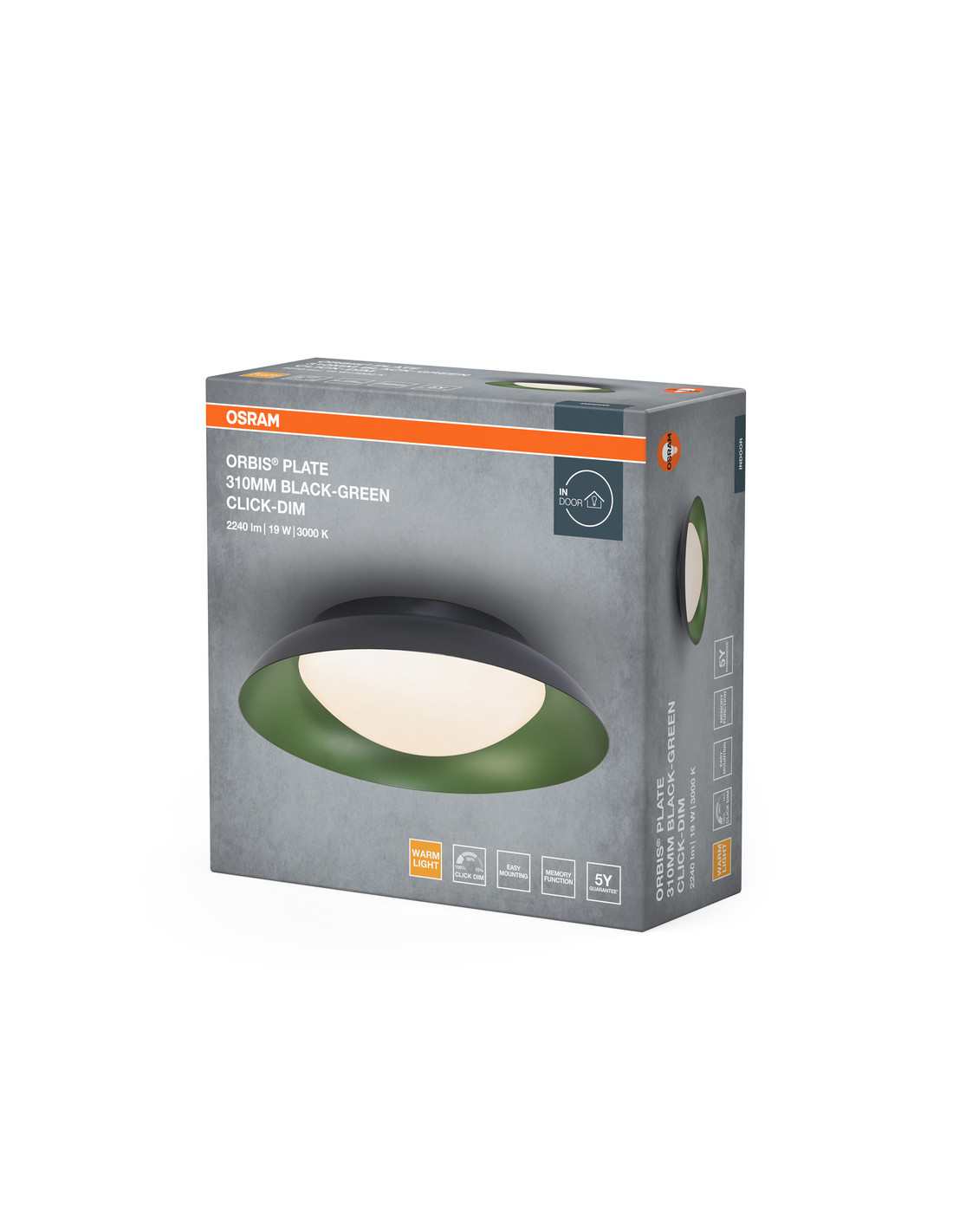 PLAFON LED ORBIS PLATE 310MM 19W 3000K ciepła biała CLICK DIM BLACK AND GREEN