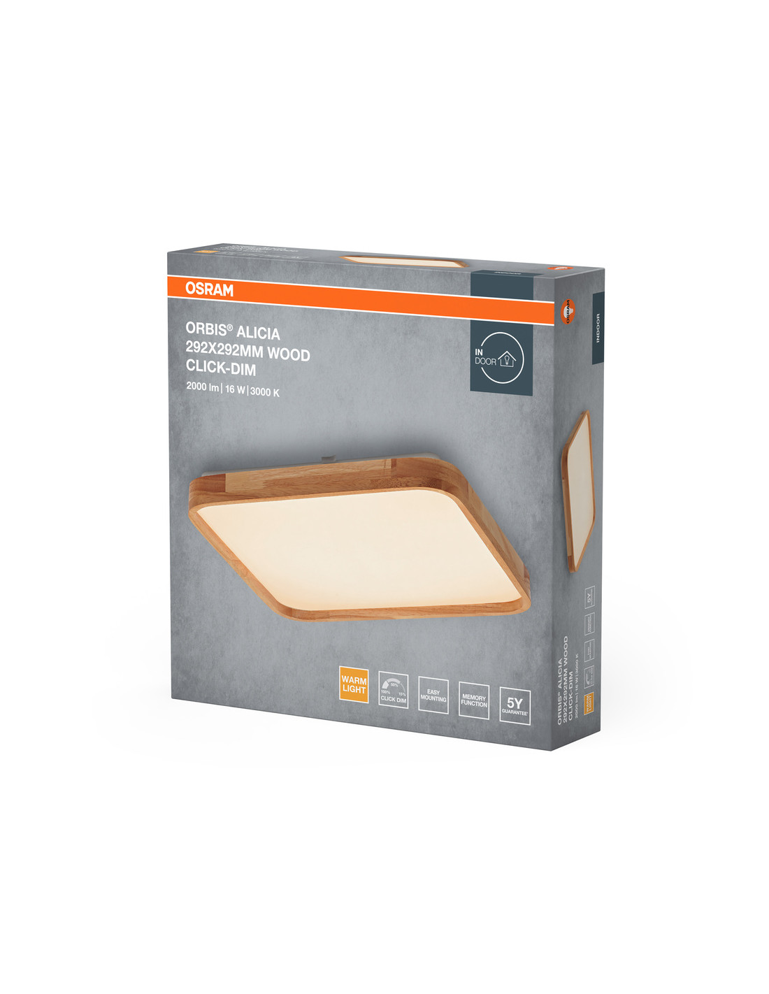 PLAFON LED ORBIS ALICIA 292X292MM 16W 3000K ciepła biała CLICK DIM WOOD DECOR