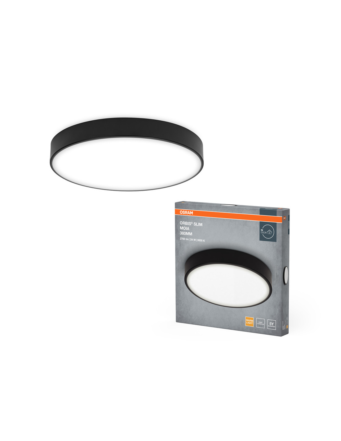 PLAFON LED ORBIS SLIM MOIA 380 24W 3000K ciepła biała BK