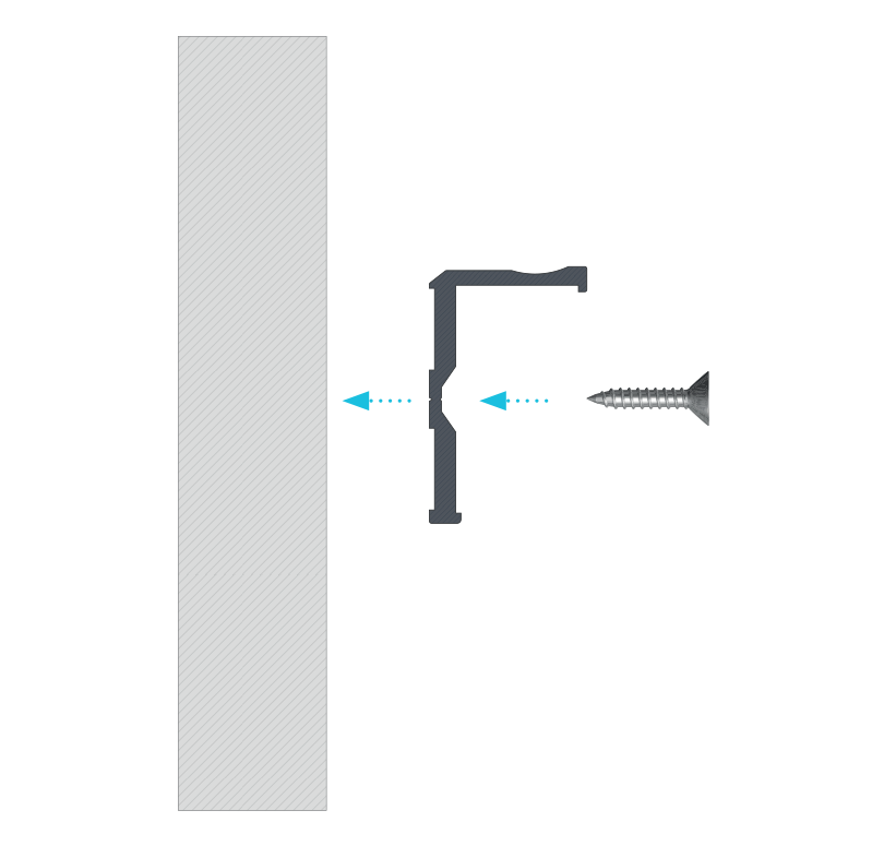 Efekt końcowy montażu profilu E za pomocą wkrętu montażowego