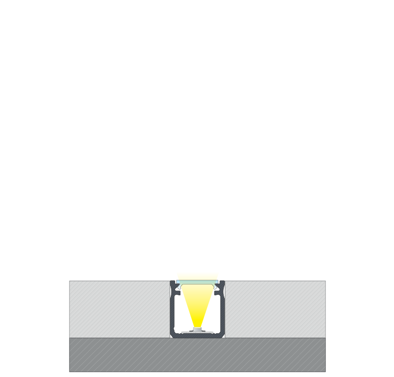 Efekt końcowy montażu profilu Y z kloszem BASIC wpuszczonego pomiędzy płytami