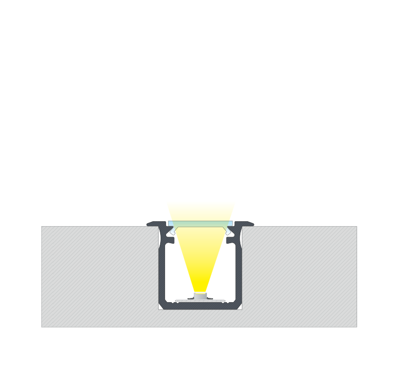 Efekt końcowy montażu profilu G wpuszczanego z kloszem BASIC