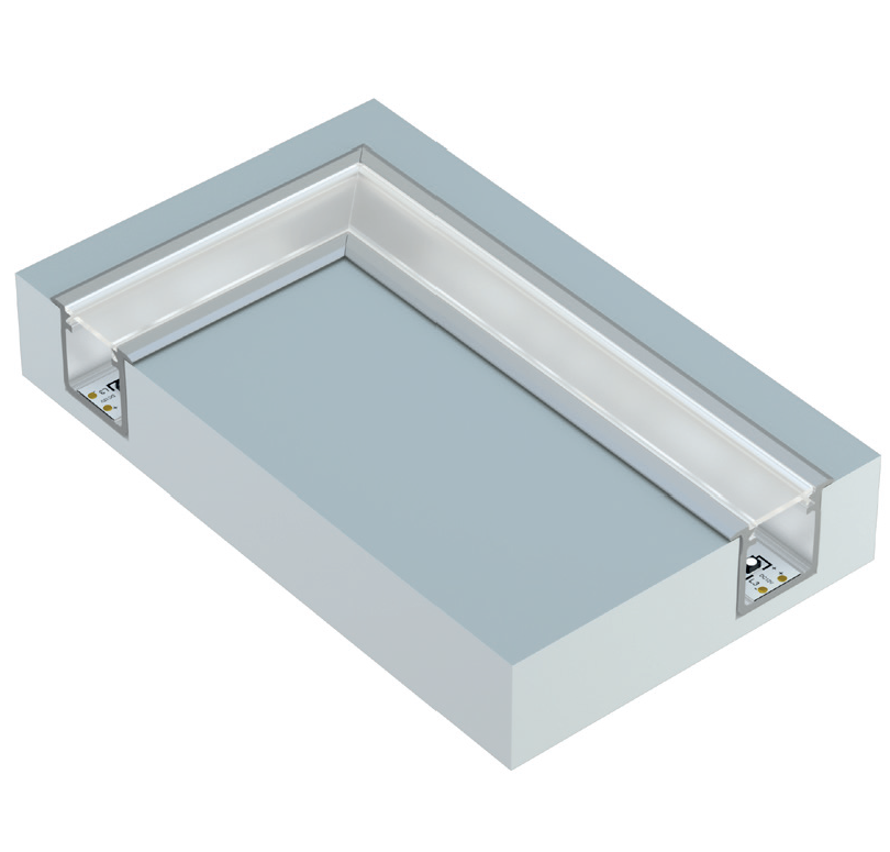 Profil LUMINES typ G, wpuszczany. Zaprojektowany z myślą o oświetleniu pomieszczeń kuchennych i sklepowych. Świetnie pasuje do montażu wewnątrz szaf, blatów i schodów.