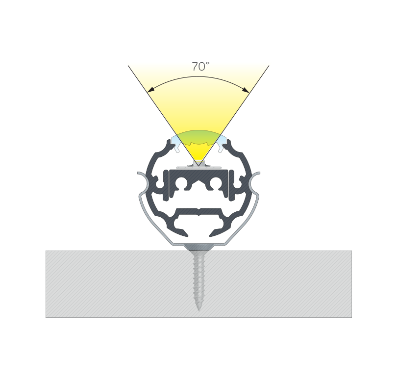 Przykład zastosowania profilu pomocniczego COSMO M1 zmieniającego kąt świecenia taśmy LED