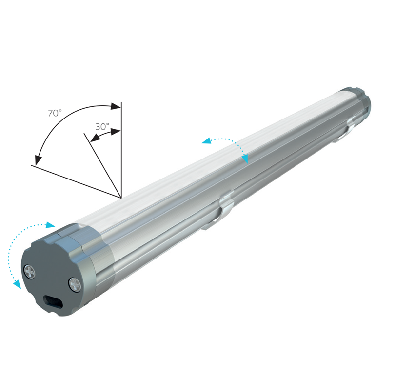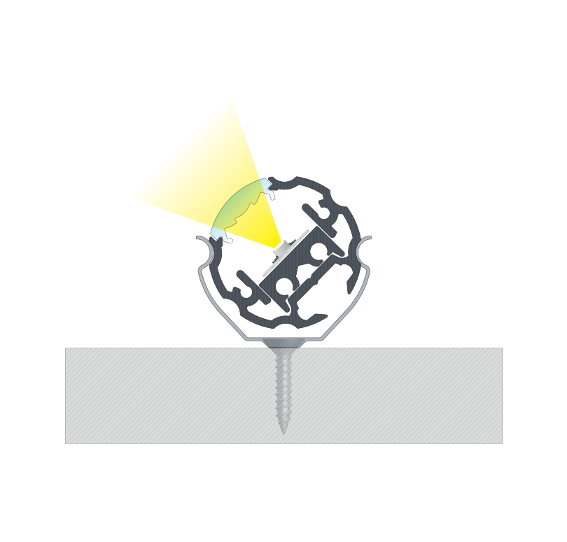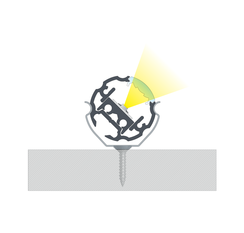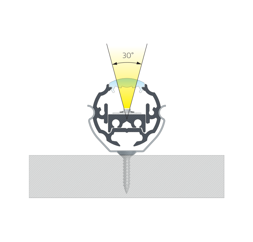 Złożenie profilu COSMO z kloszem BASIC LENS 30, uchwytami, zaślepkami oraz pierścieniem regulacyjnym