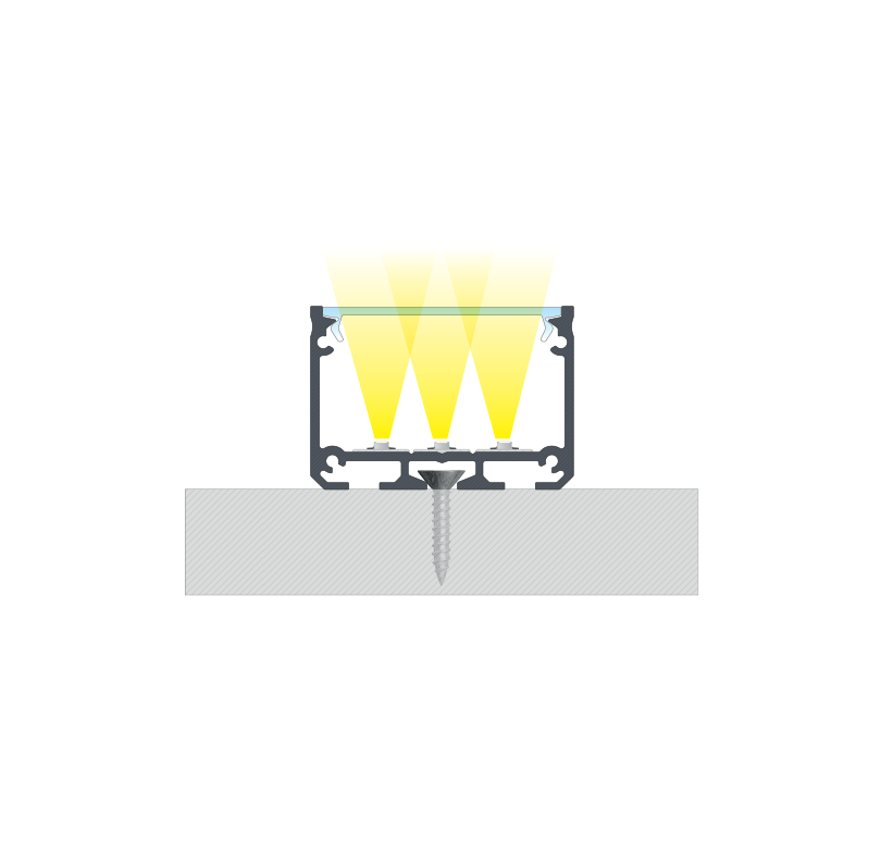 Efekt końcowy montażu profilu ILEDO z kloszem WIDE za pomocą wkrętu montażowego