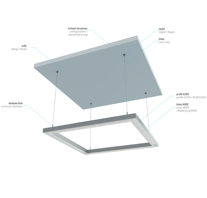 Profil architektoniczny LUMINES typ iLEDO do stosowania napowierzchniowego oraz jako element oświetlenia wiszącego.Dzięki kompatybilności z profilem montażowym MODI, daje możliwość estetycznego zamontowania zasilacza.