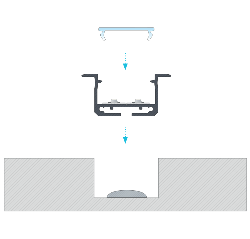 Profil inSILEDA LUMINES to profil wpuszczany, architektoniczny przeznaczony do stosowania sufitowego i ściennego w wyfrezowanym otworze. Umożliwia montaż dwóch taśm LED równolegle.