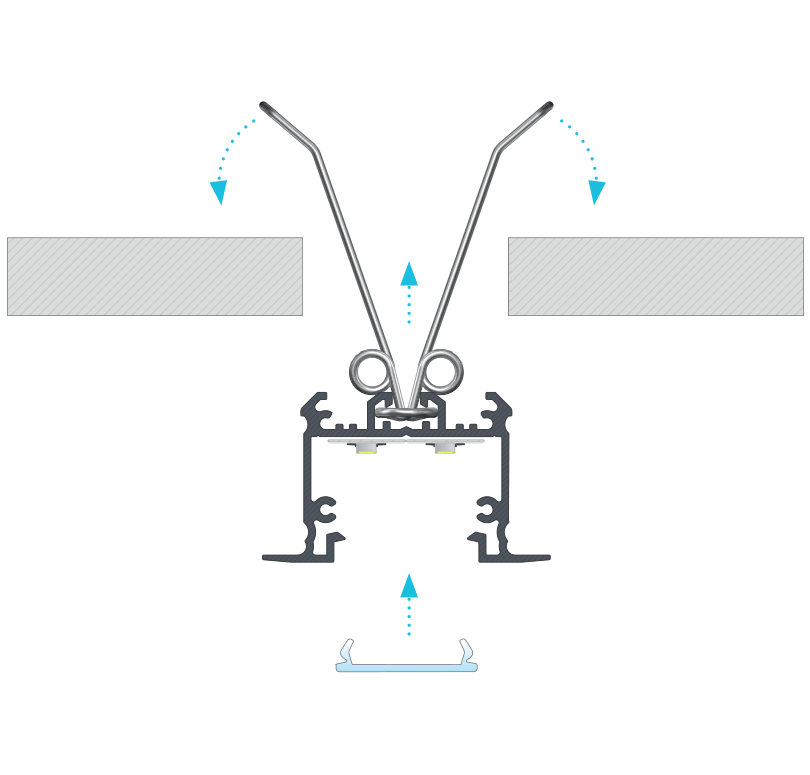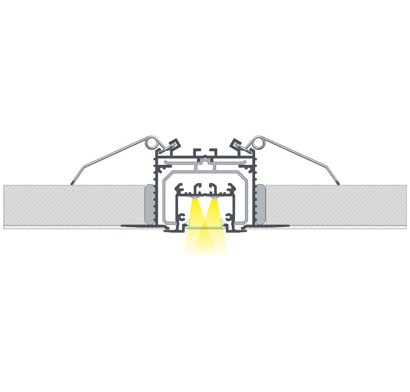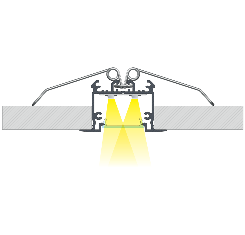 Efekt końcowy montażu profilu inTALIA z kloszem DOUBLE przy pomocy sprężyn montażowych
