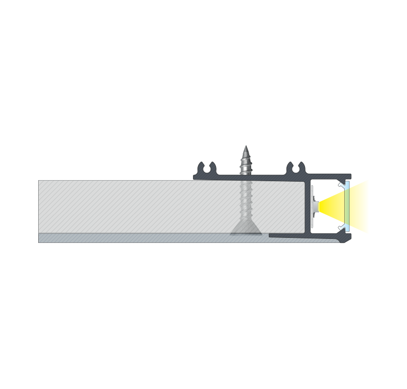 Profile APA16 to profil przeznaczony do montażu na ścianę w celu wykonania elementów dekoracyjnych z wykorzystaniem płyty 16 mm.