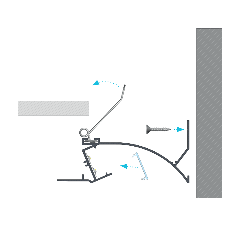 Instrukcja montażu profilu TOPO z kloszem DOUBLE z wykorzystaniem sprężyny montażowej w systemie sufitów podwieszanych.
